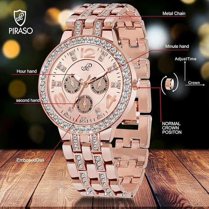 PIRASO Zuperia Diamond Studded Rosegold Analog Watch For women-NK 2569 ROSEGOLD