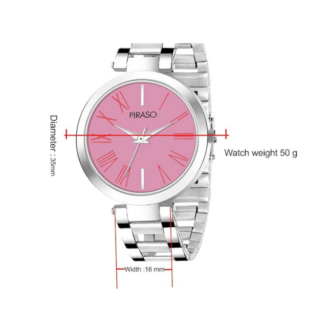 PIRASO Pink Dial with Silver Stainless Steel Chain Watch for Women-2270 PINK