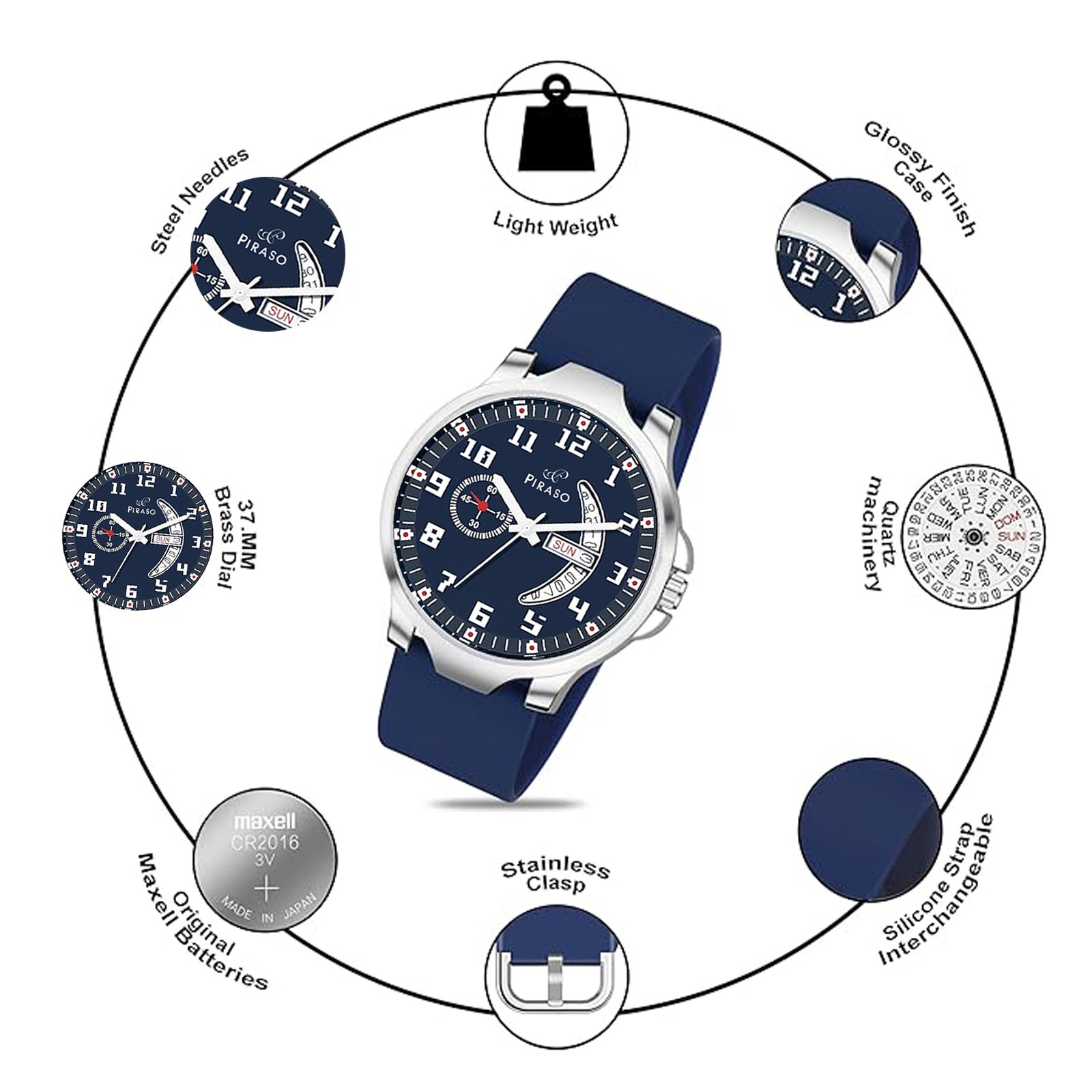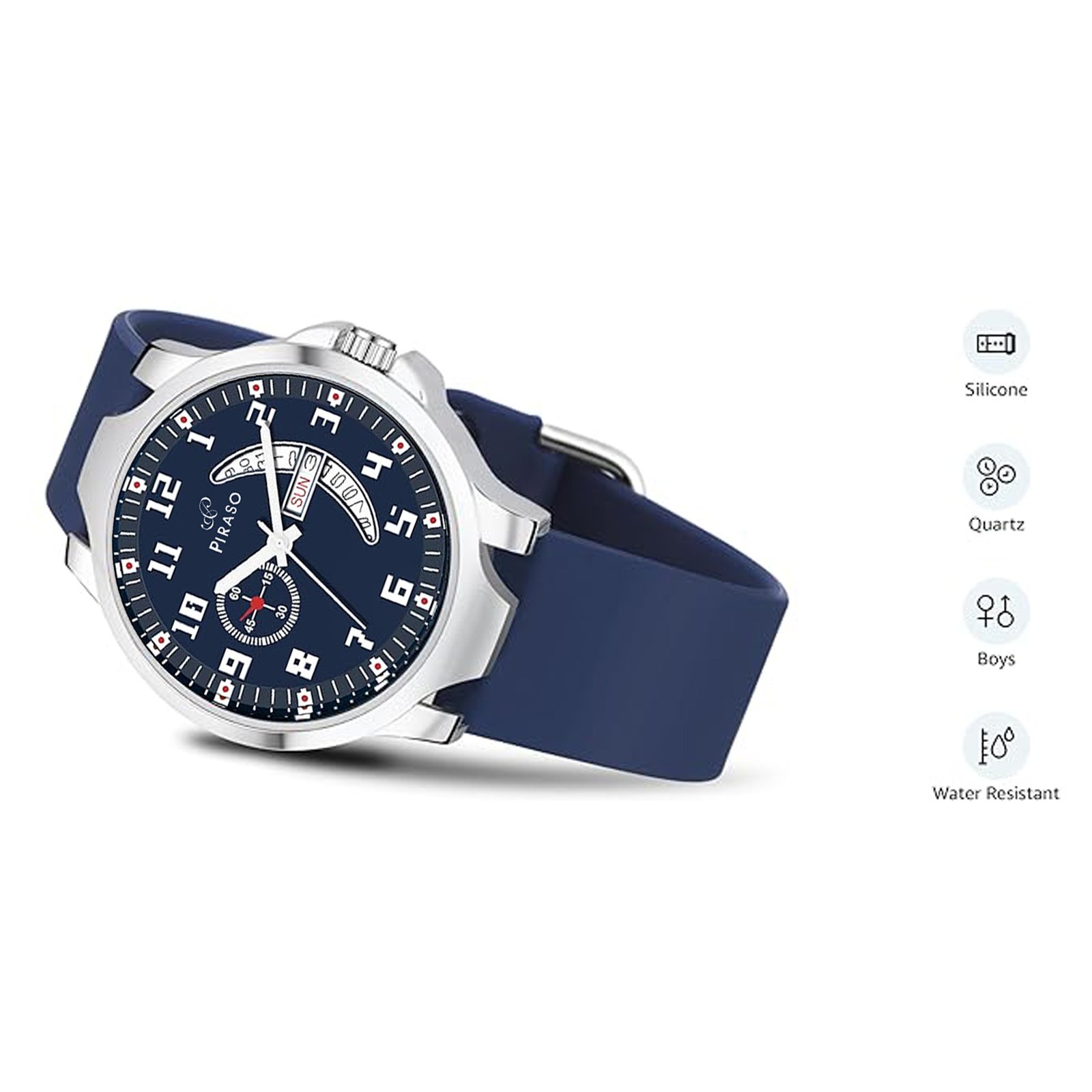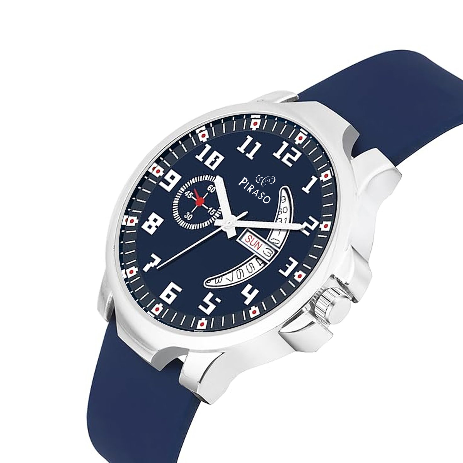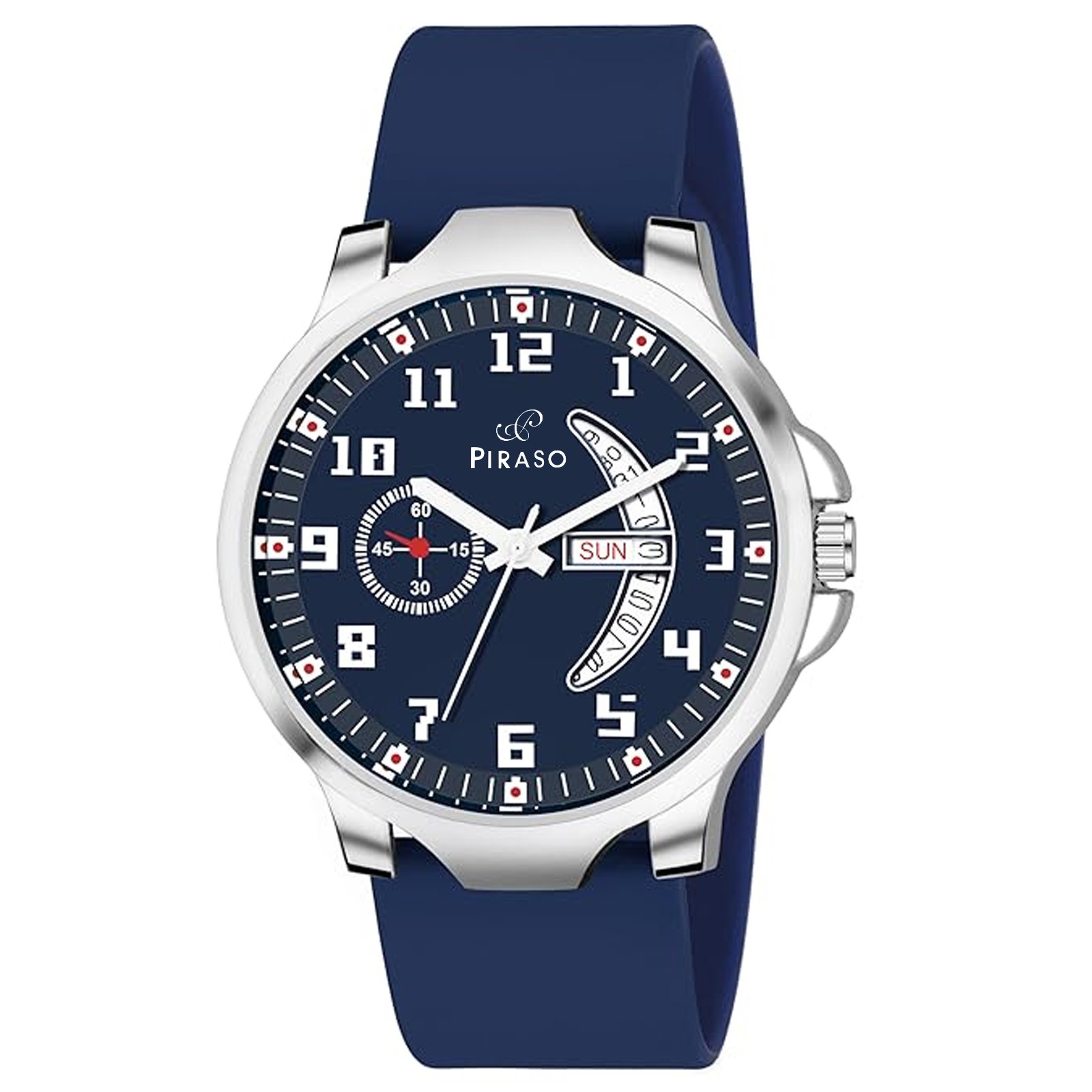 PIRASO ANALOG BLUE DIAL & BLUE SILICONE STRAP WATCH FOR MEN-D&D P95427 BLUE SILICONE STRAP