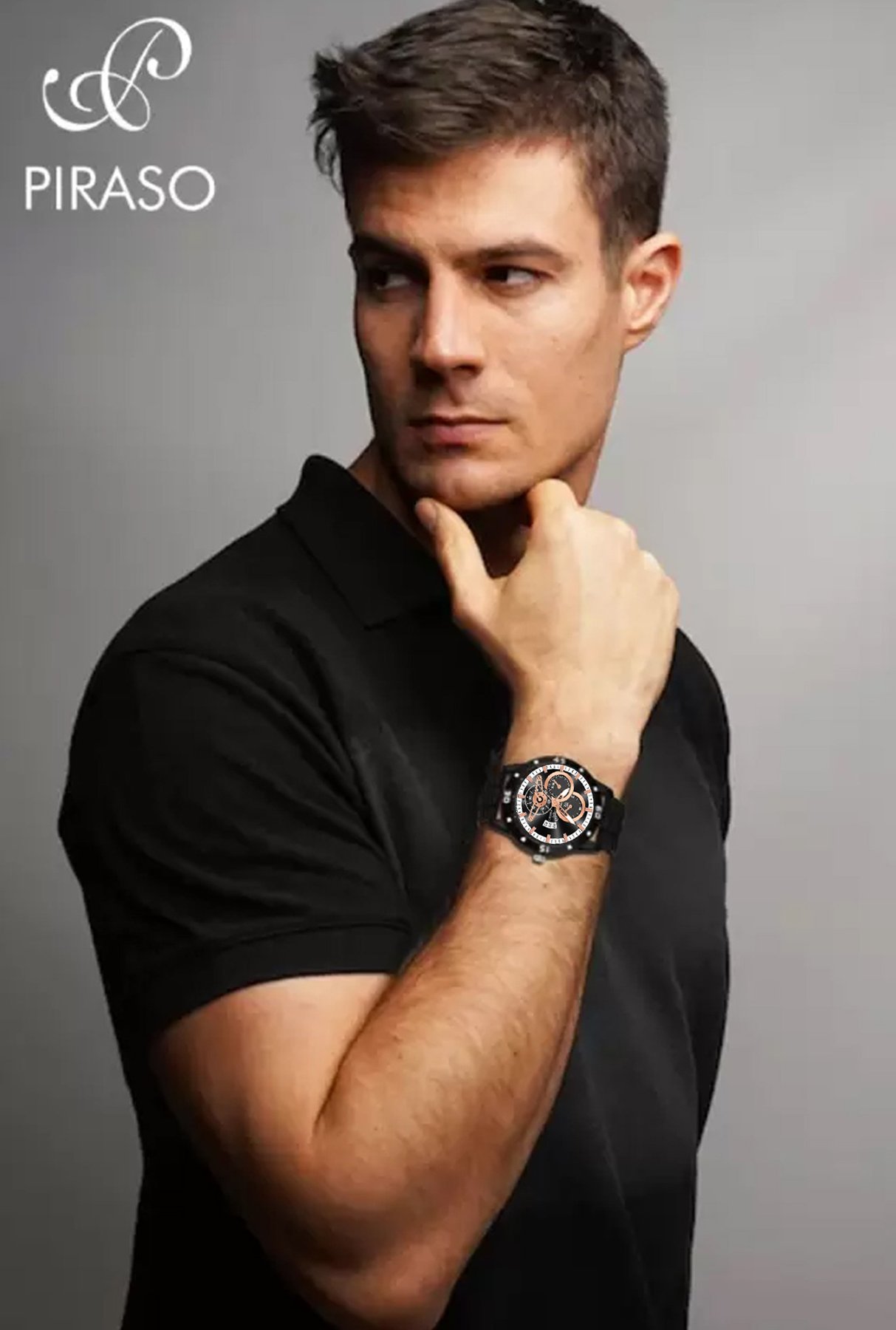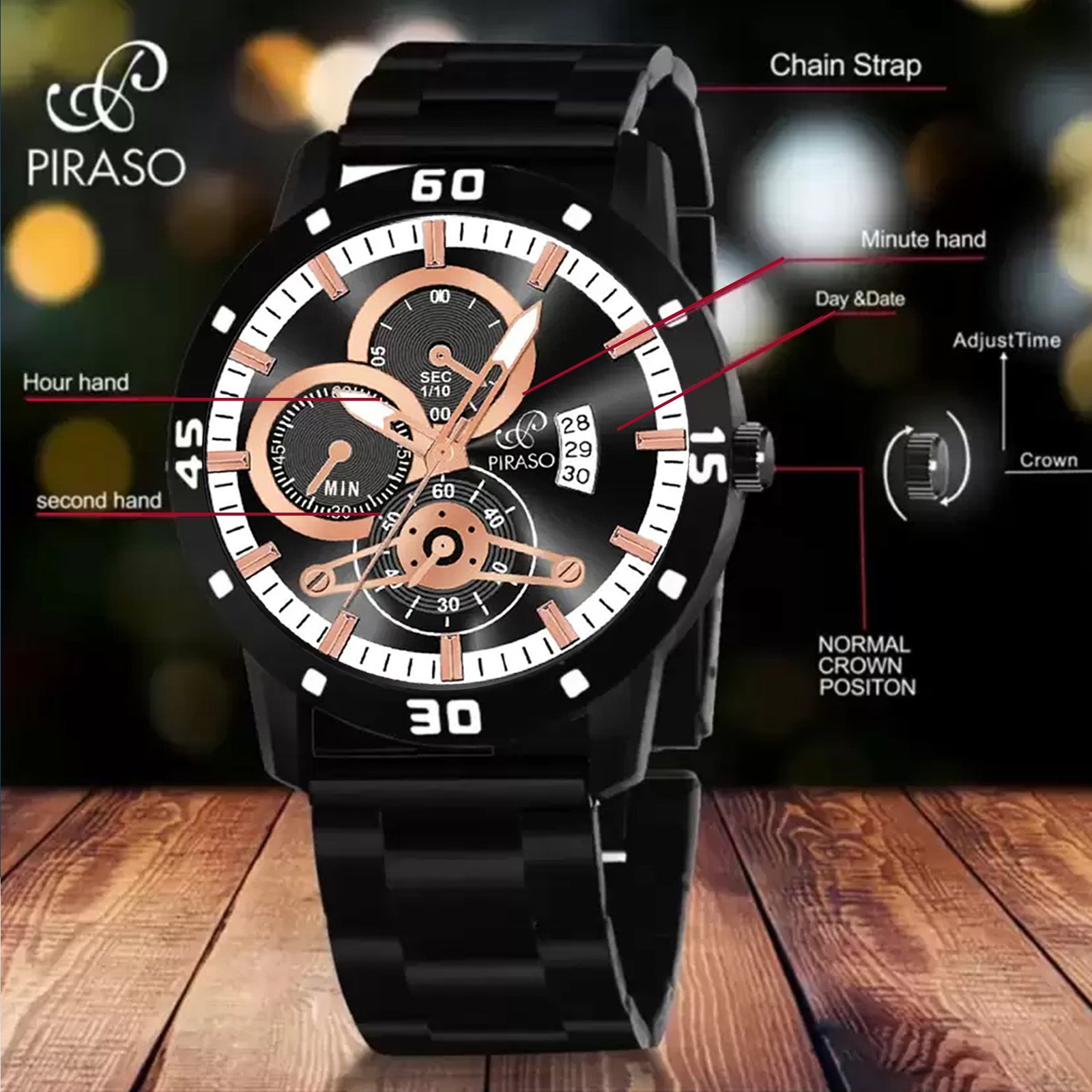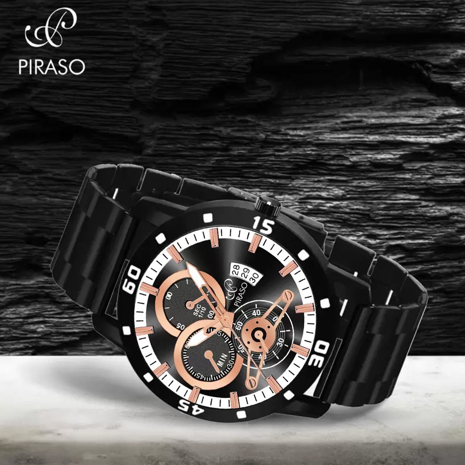 PIRASO ANALOG DATE BLACK COPPER DIAL & BLACK CHAIN WATCH FOR MEN-D&D 2025 COPPER BLACK CHAIN