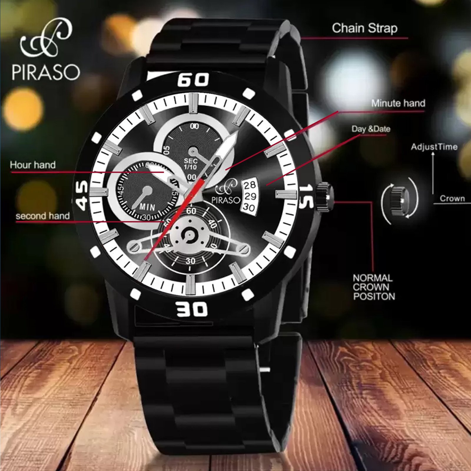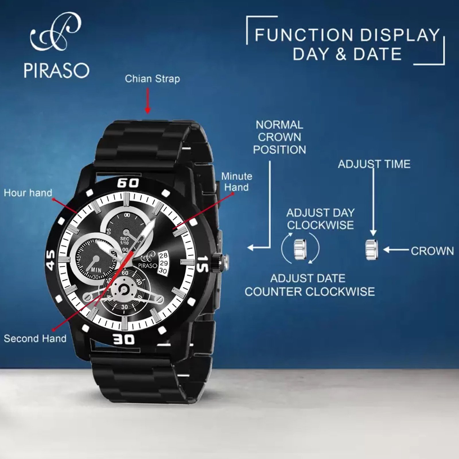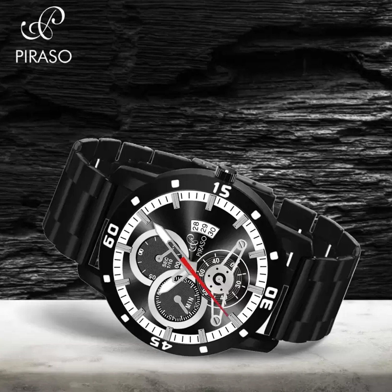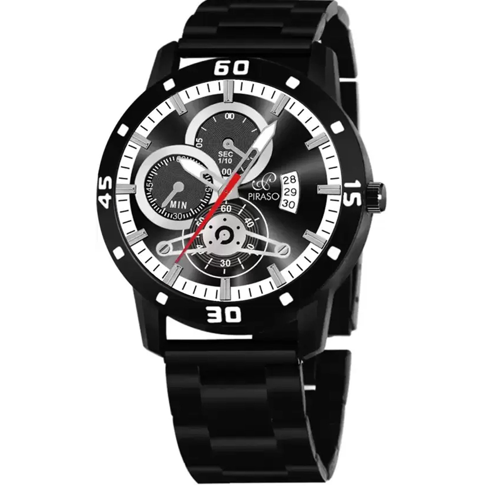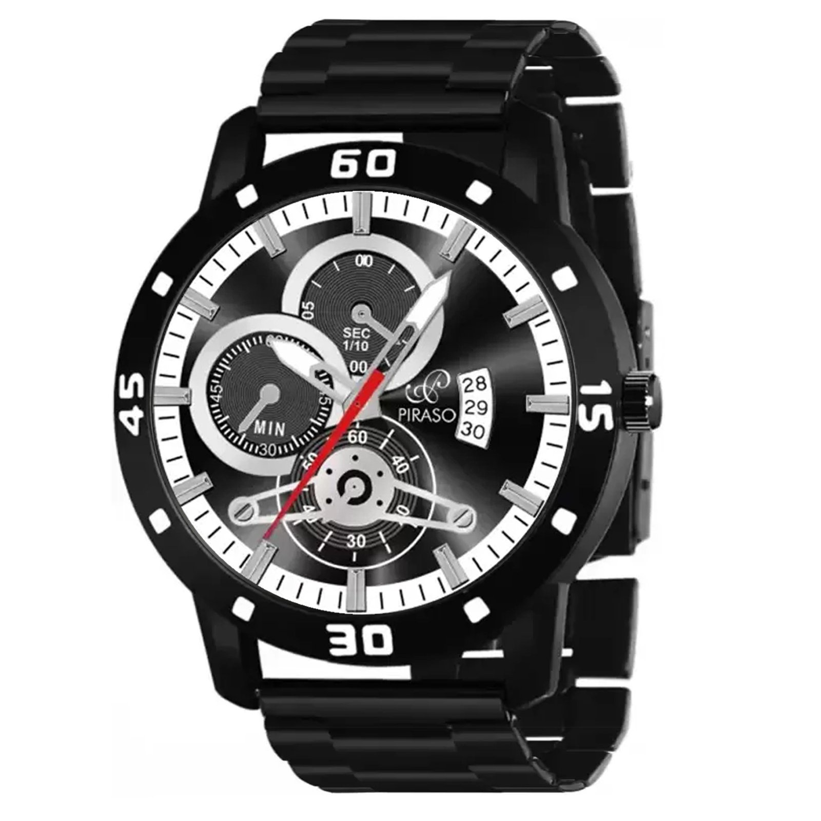 PIRASO ANALOG DATE BLACK DIAL & BLACK CHAIN WATCH FOR MEN-D&D 2025 BLACK