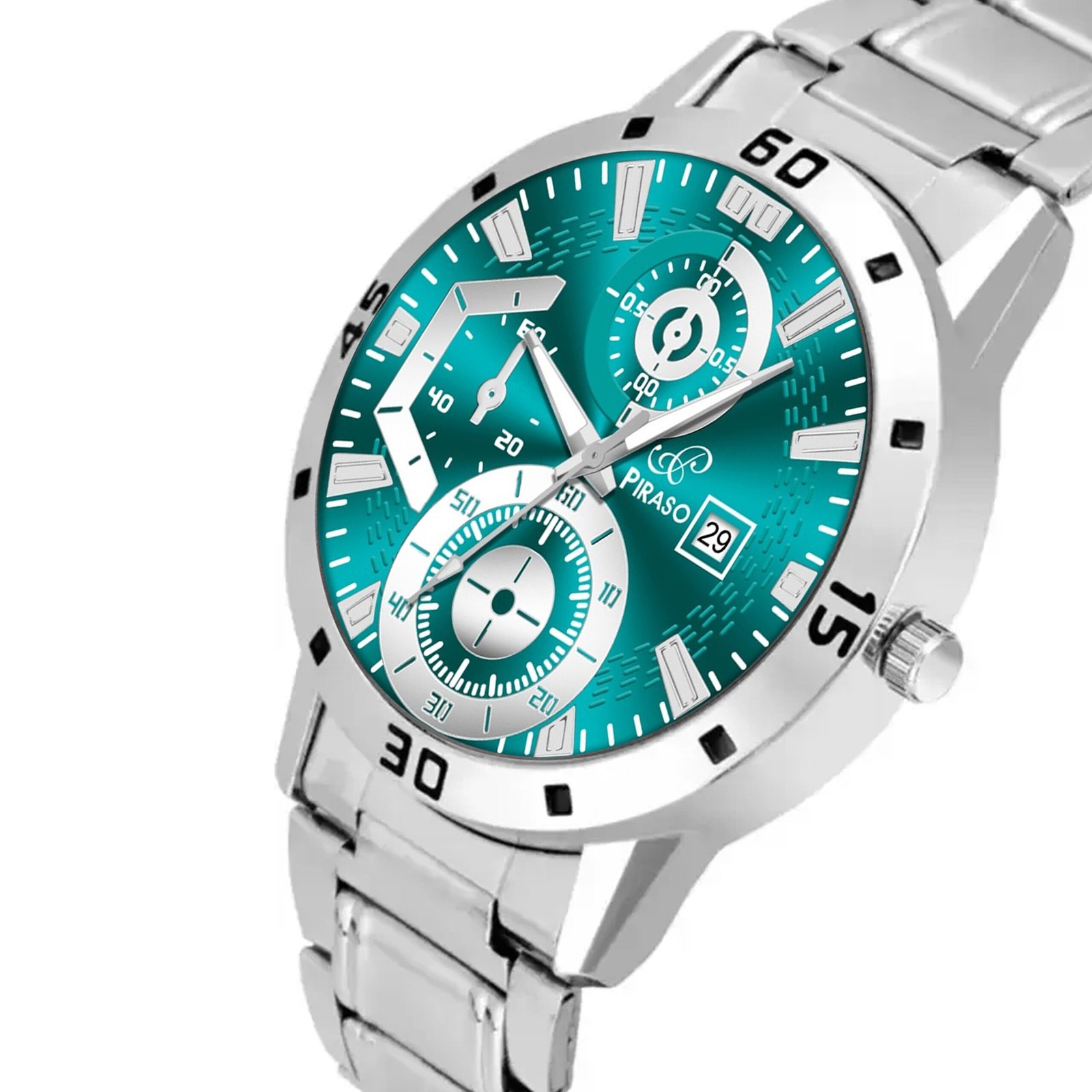 PIRASO ANALOG DATE TURQUOISE DIAL & SILVER CHAIN WATCH FOR MEN-D&D ADI TURQUOISE SILVER