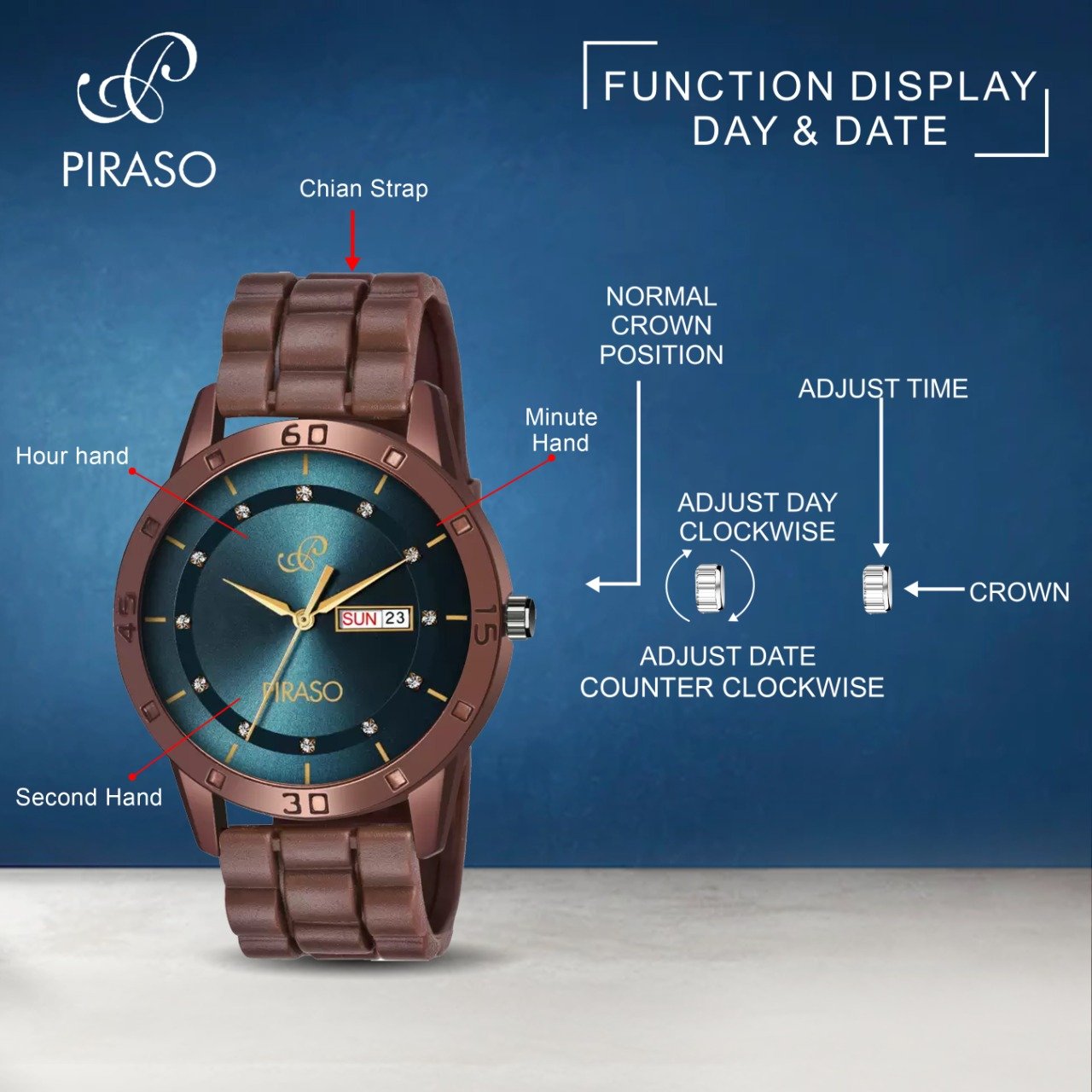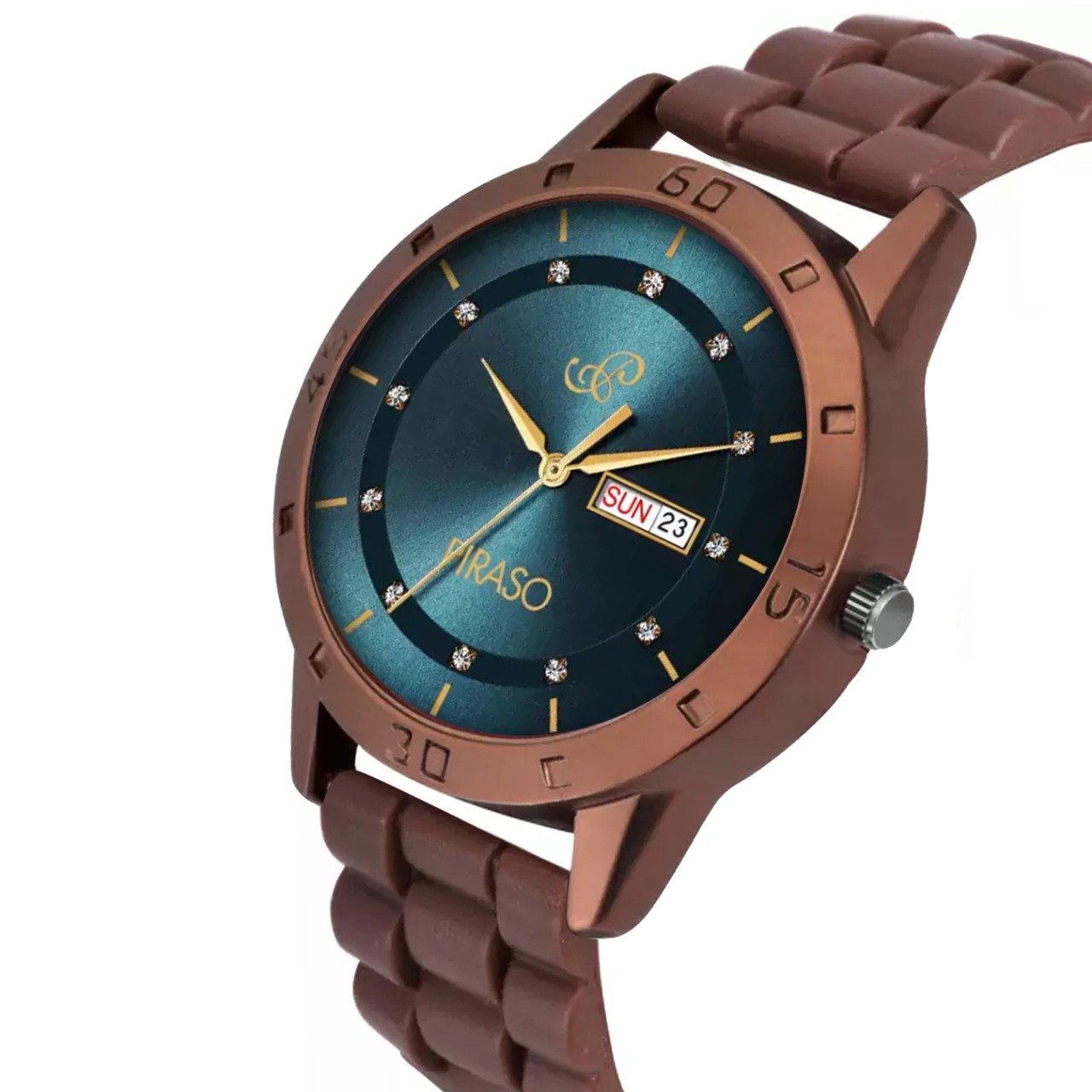 PIRASO ANALOG DAY & DATE BLUE DIAL & BROWN MESH DESIGNER WATCH FOR MEN-D&D F92 BLUE BROWN