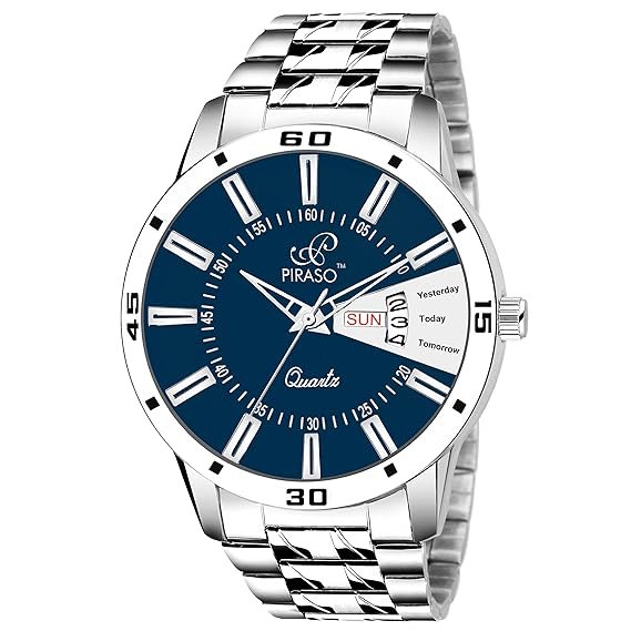 PIRASO ANALOG DAY & DATE BLUE DIAL & SILVER CHAIN WATCH FOR MEN-2038-BL