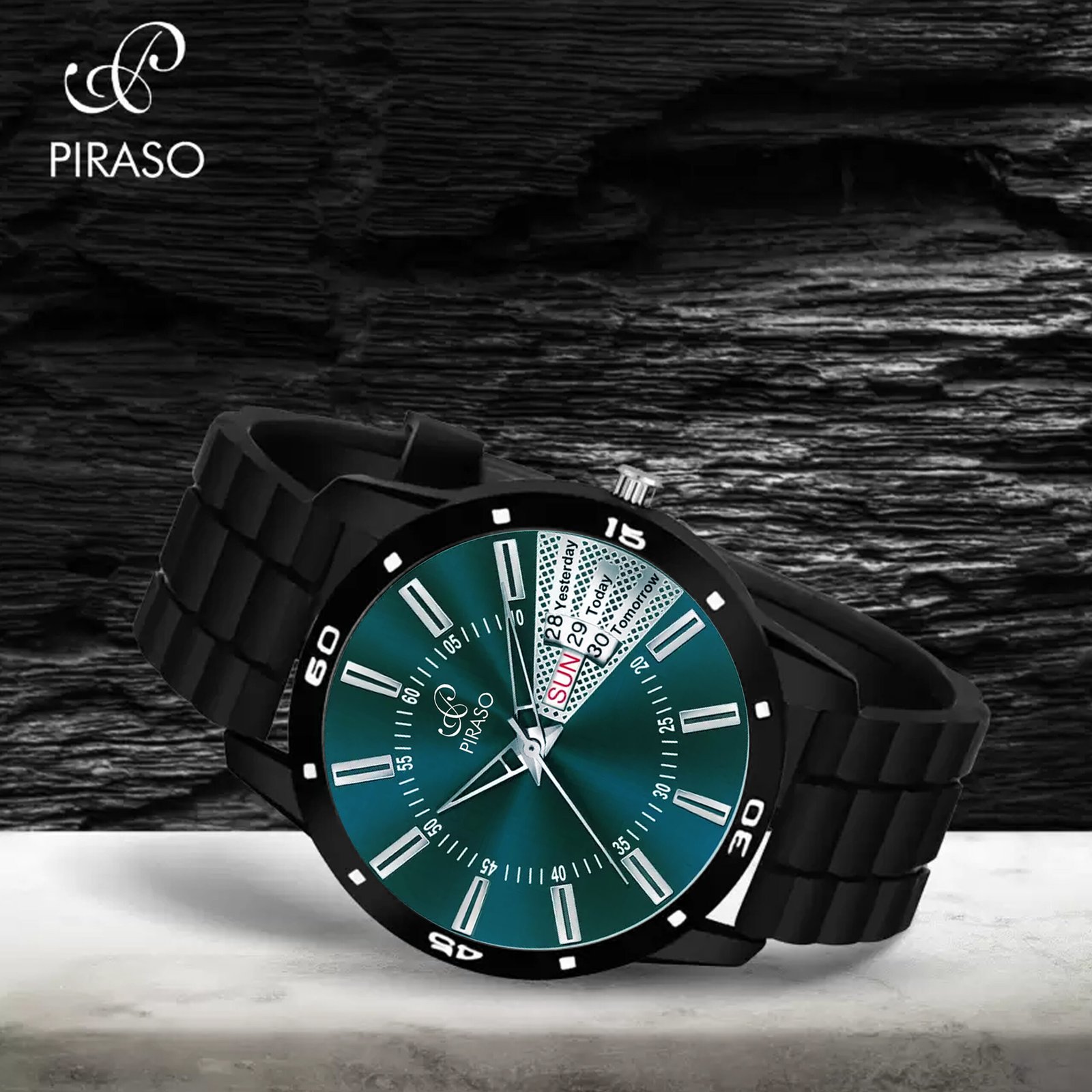 PIRASO ANALOG DAY & DATE TURQUOISE DIAL & BLACK STRAP WATCH FOR MEN-2038-TURQUOISE BLACK MESH