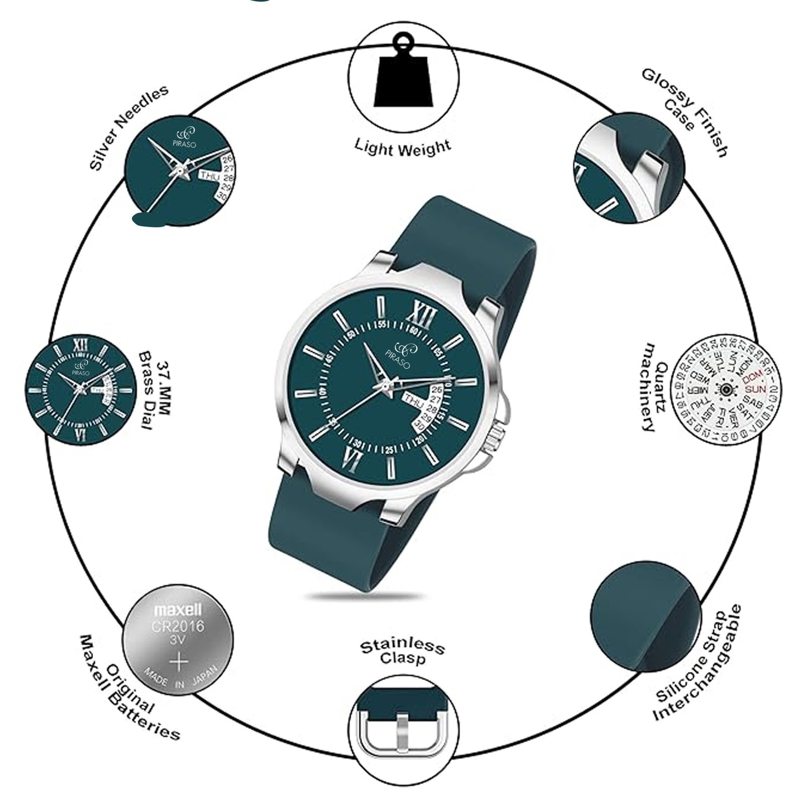 PIRASO ANALOG TURQUOISE DIAL & TURQUOISE SILICONE STRAP WATCH FOR MEN-2047 TURQUOISE SILICONE STRAP