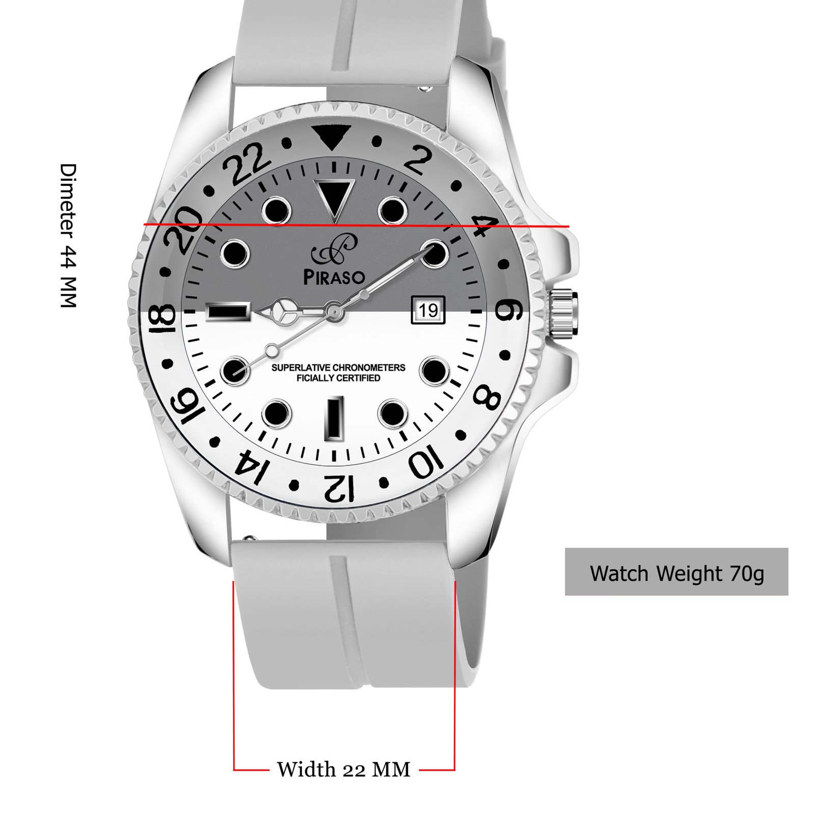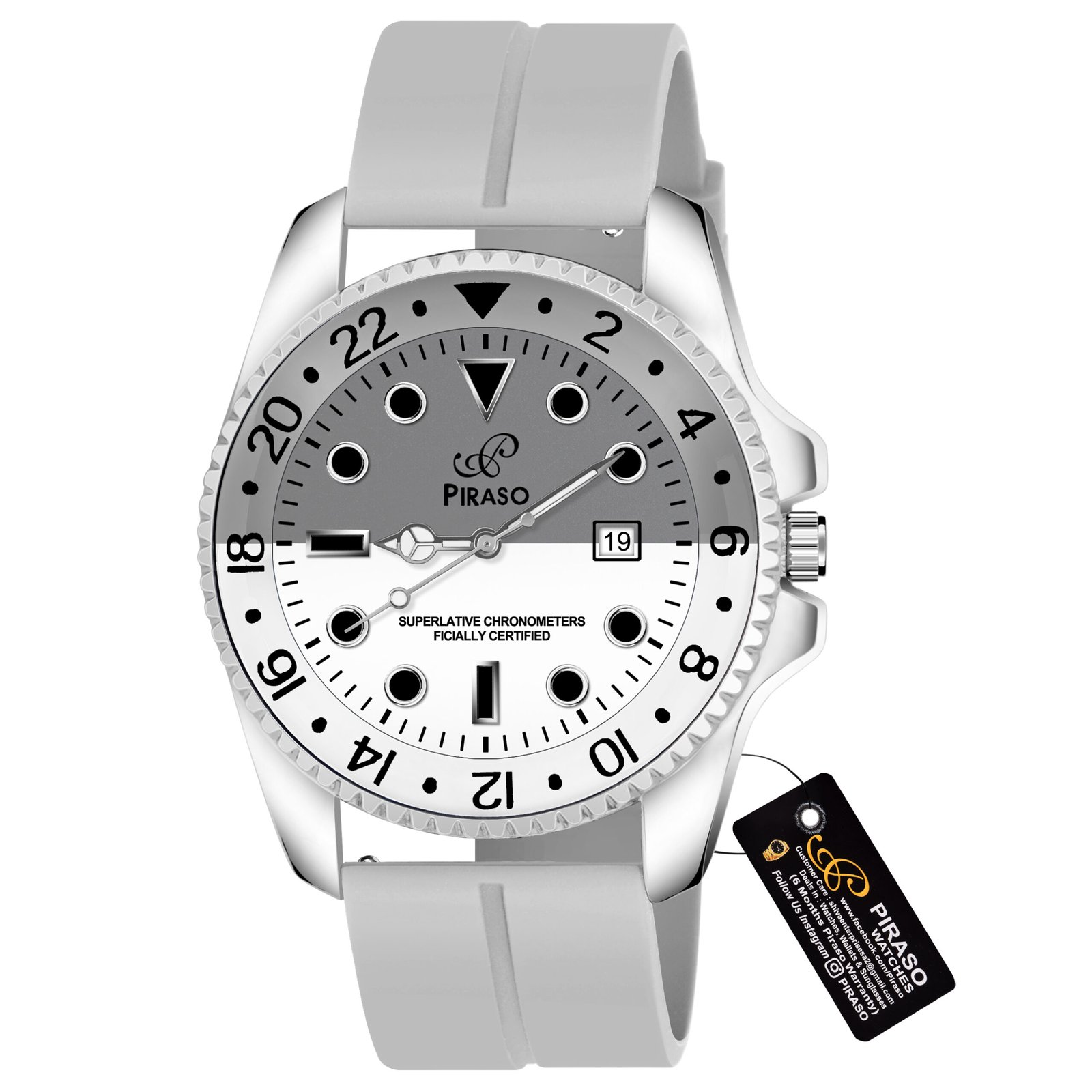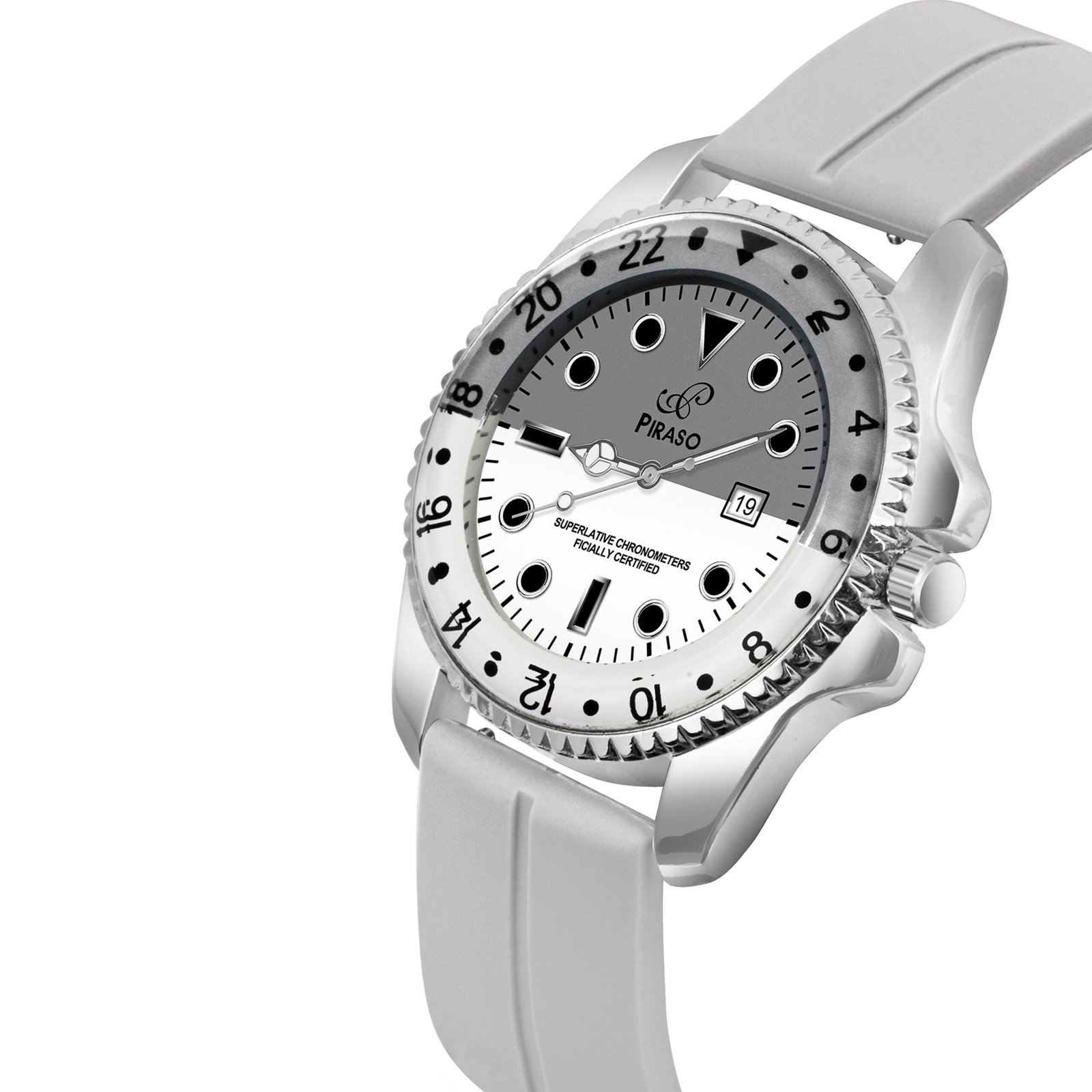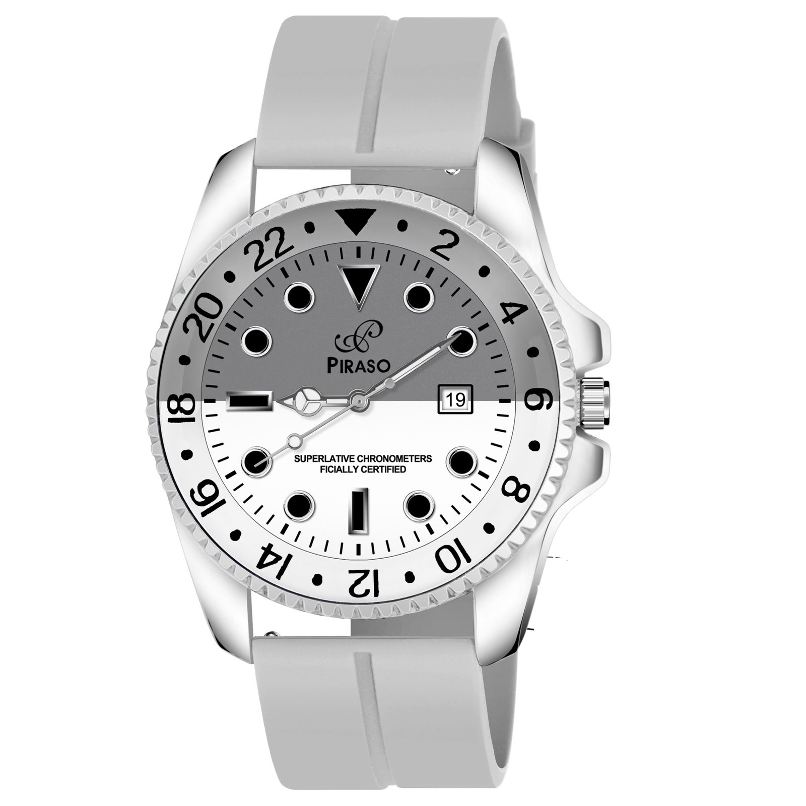 PIRASO ANALOG TWO TONE DIAL & GREY SILICONE STRAP WATCH FOR MEN-ROL-X OG WHITE& GREY(SILICON STRAP)