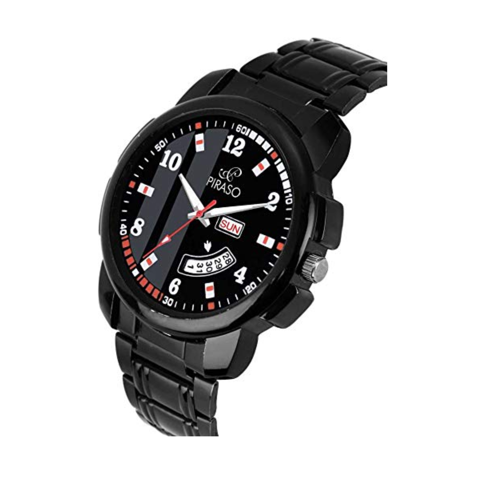 PIRASO Analog Day & Date Dial Black Chain Watch For Men-D&D-14