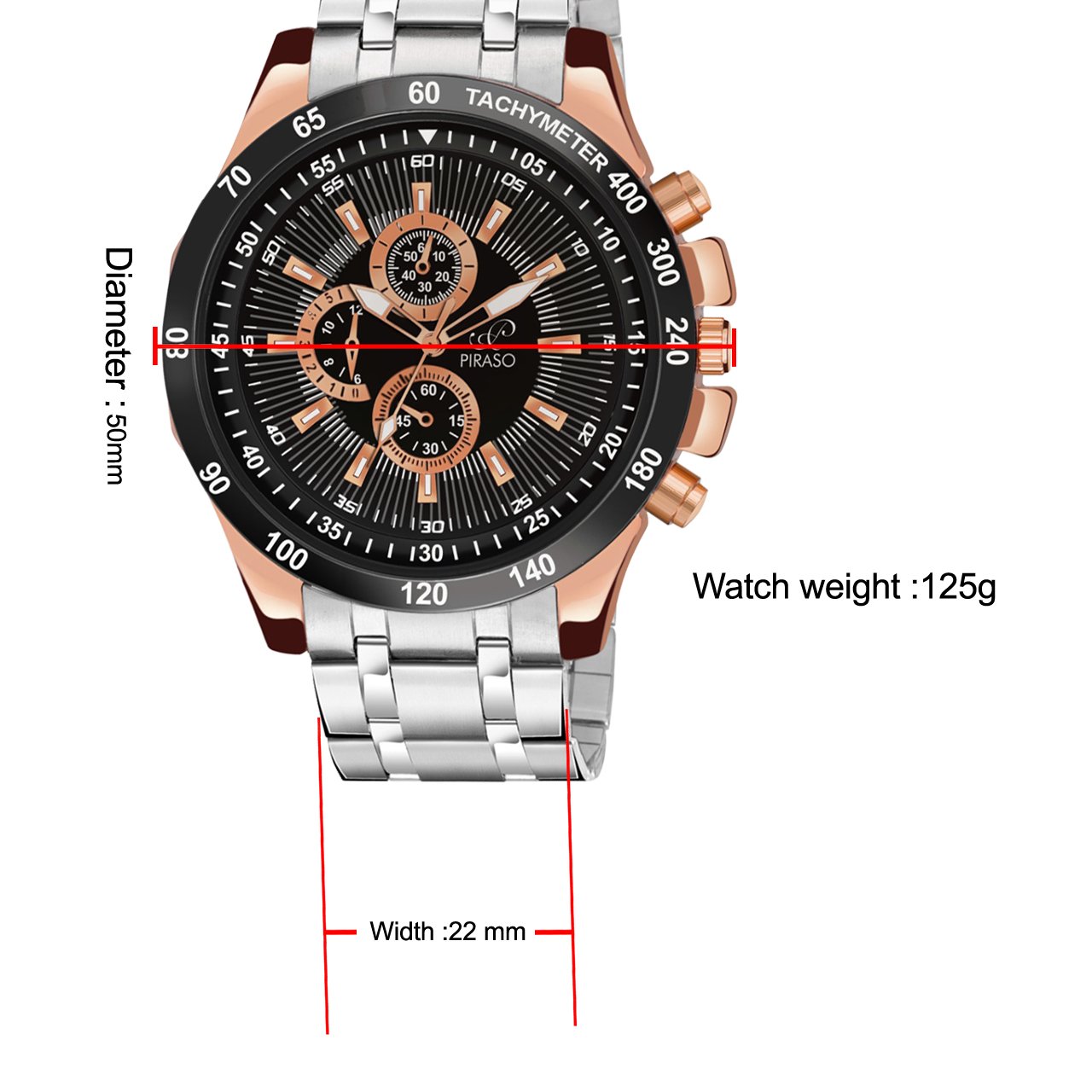 - Dial Diameter :- 45 mm | Width :- 22 mm | Watch Weight :- 80 gm