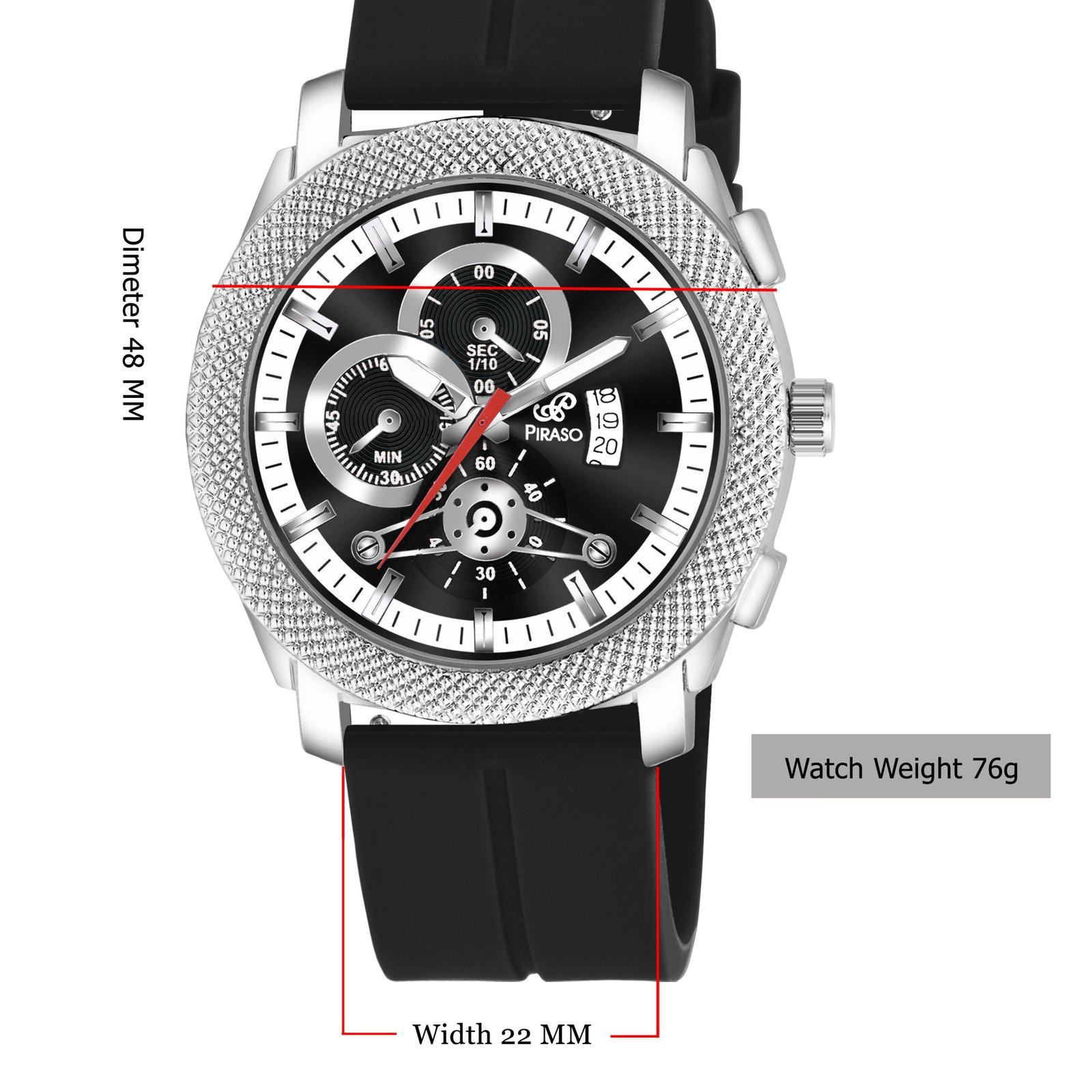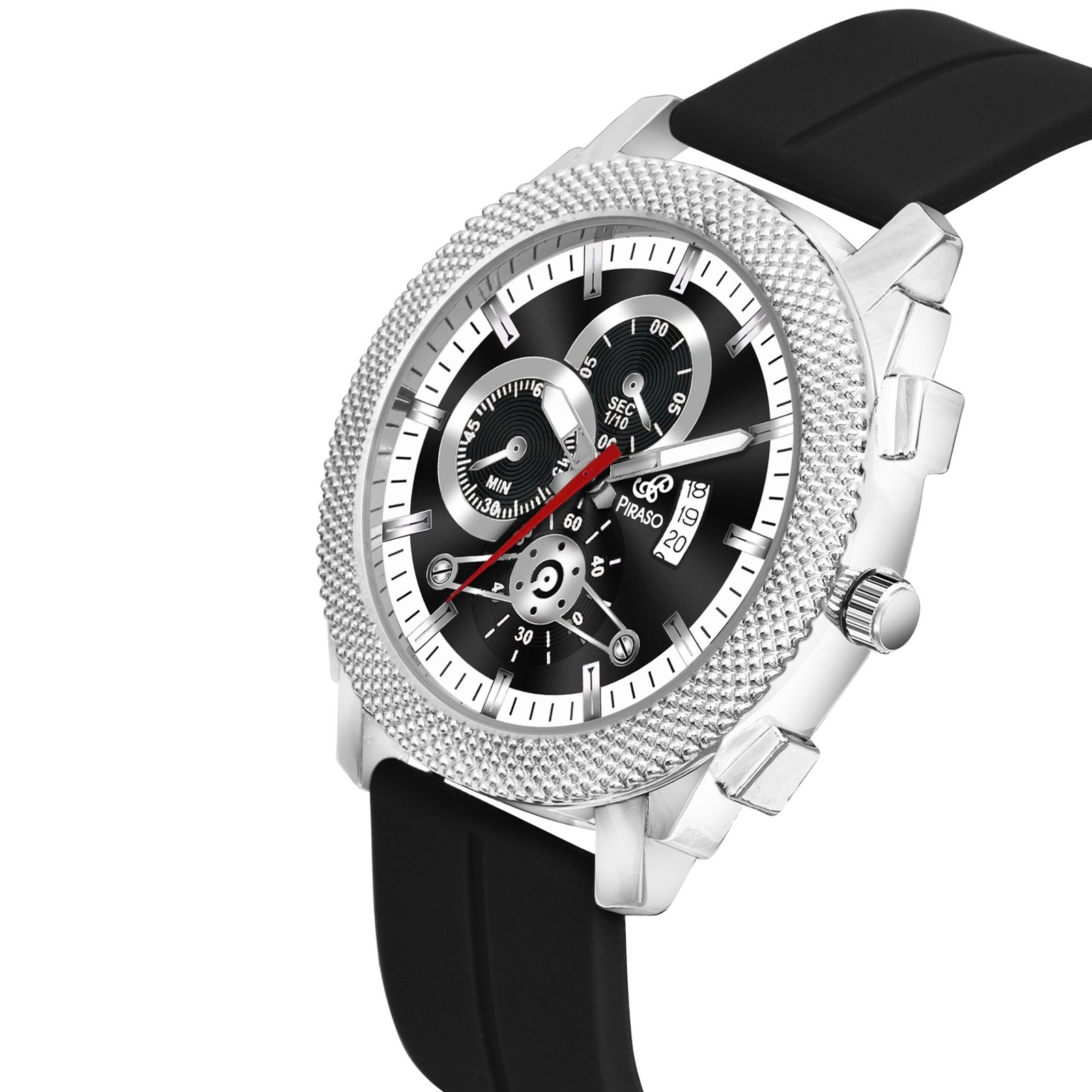Piraso Black Date Dial With Black Silicone Strap Analog Watch For Men-973 2025 SILVER BLACK SILICONE STRAP