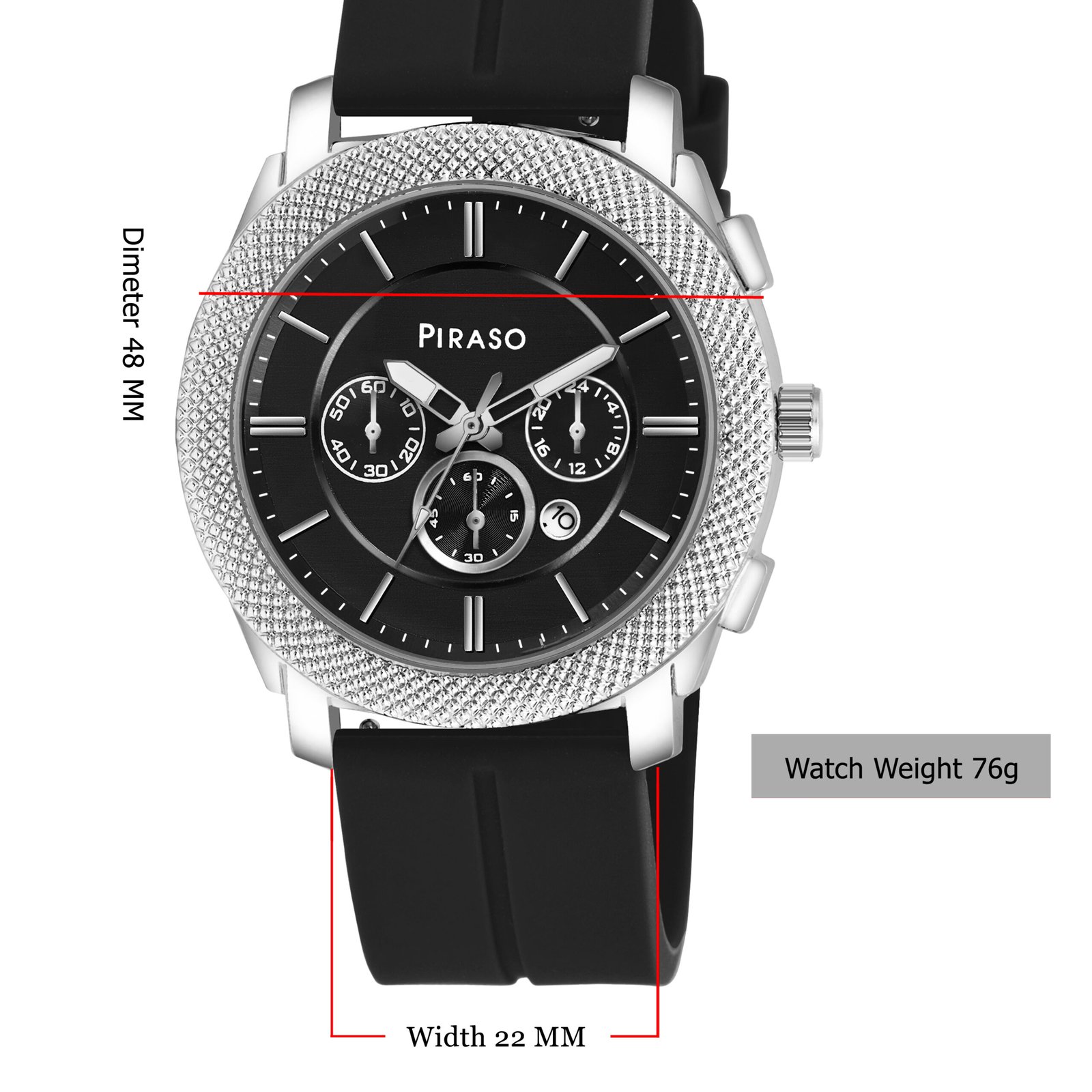 - Dial Diameter: 42mm; Strap Color: Black