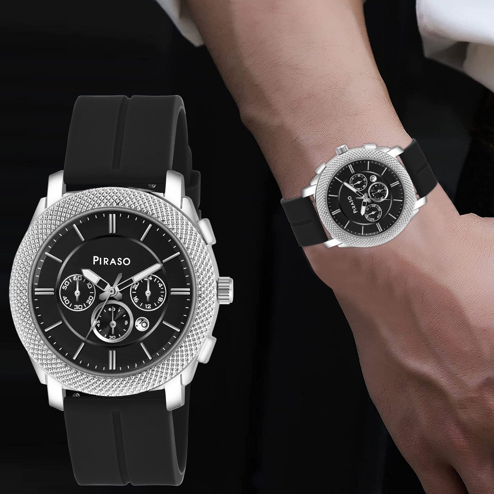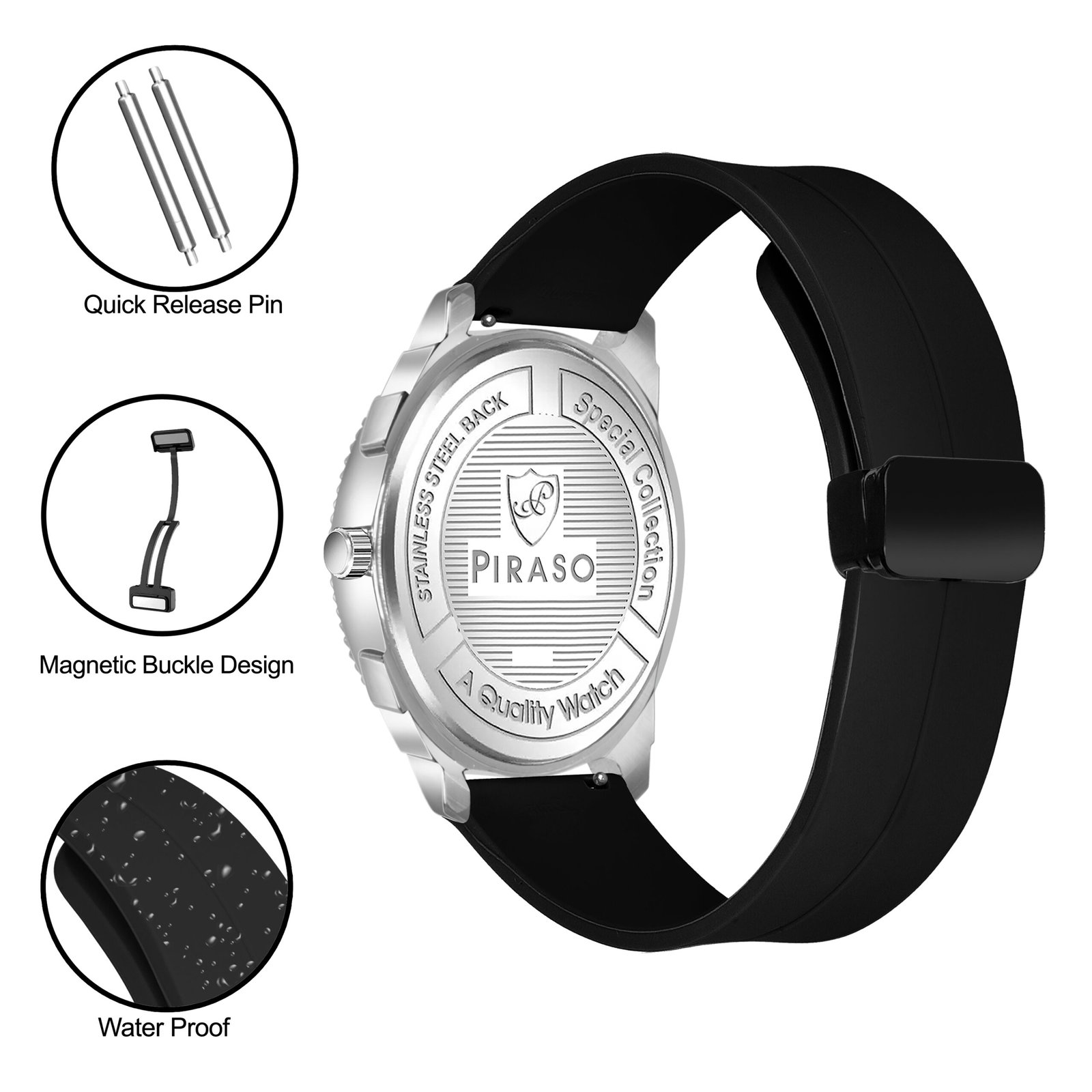 Piraso Black Dial & Black Silicone Magnetic Lock Strap Analog Watch For Men-973 2022 BLACK MAGNETIC STRAP