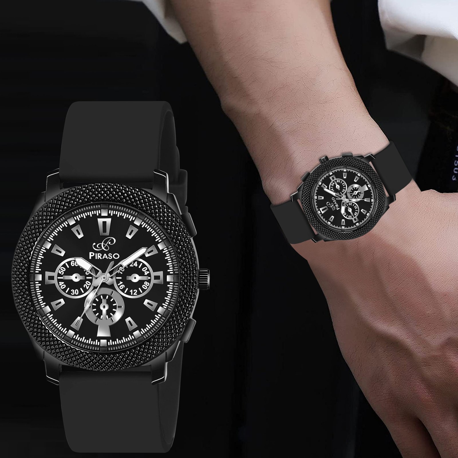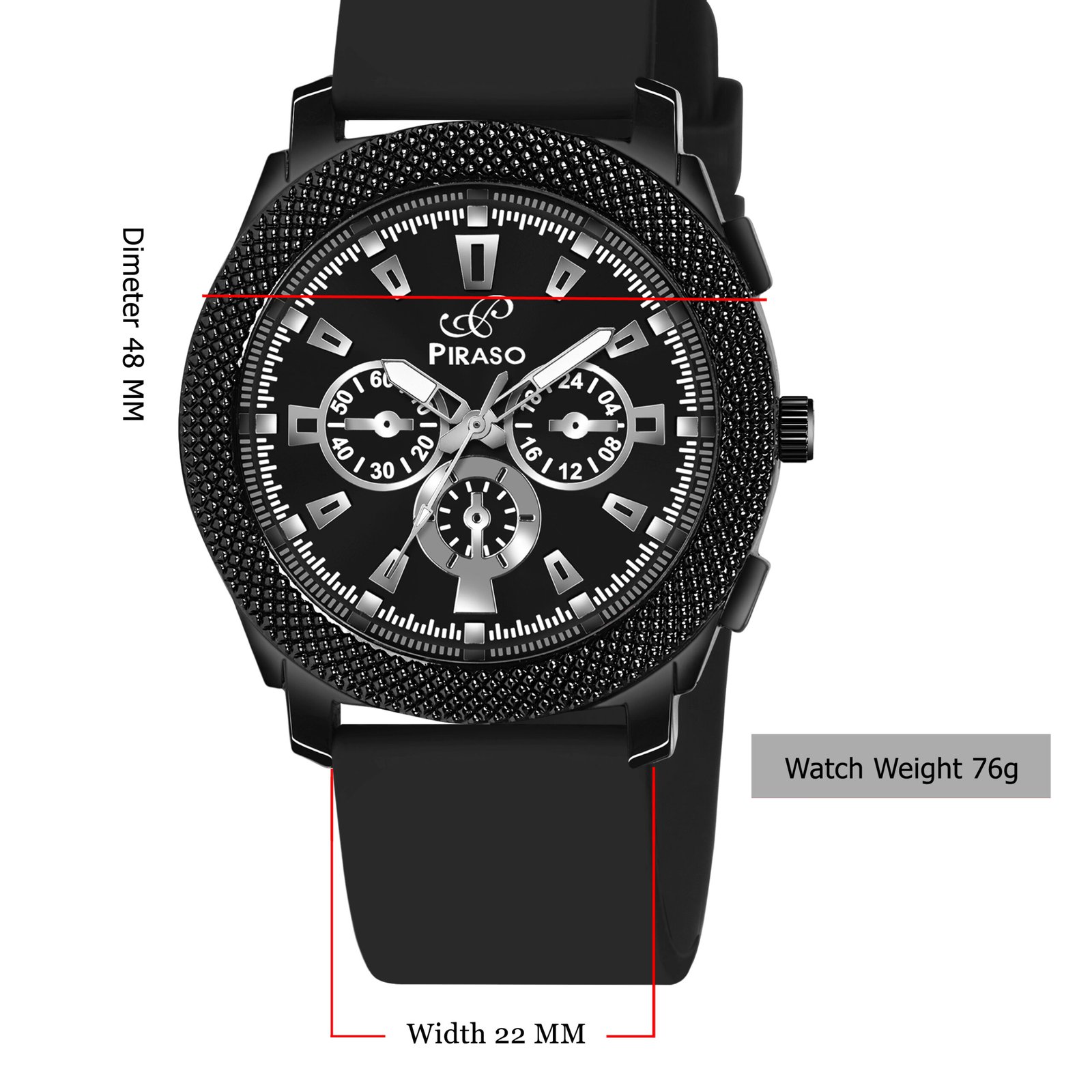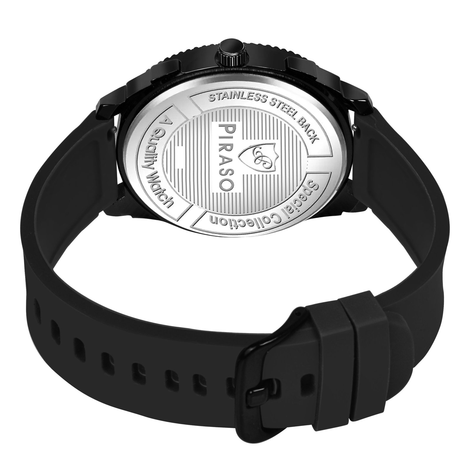 Piraso Black Dial & Black Silicone Strap Analog Watch For Men-972 8905 BLACK SILICONE STRAP