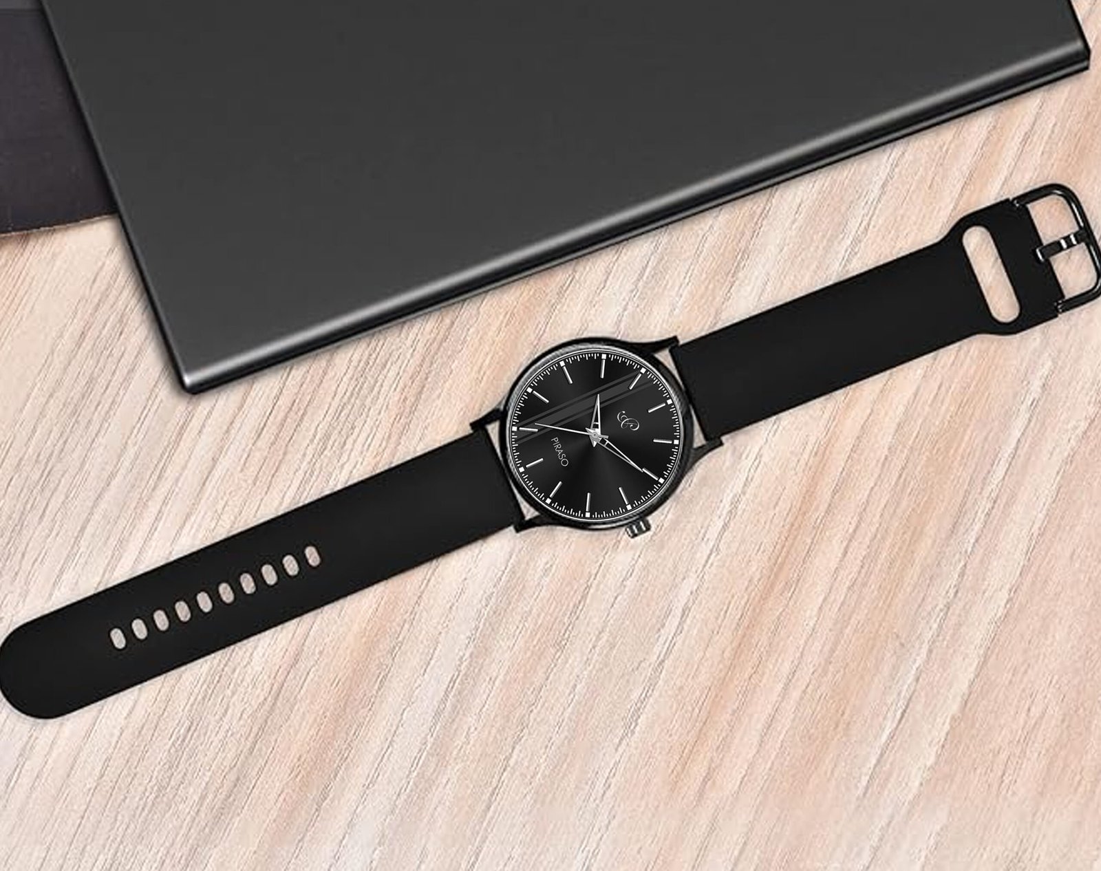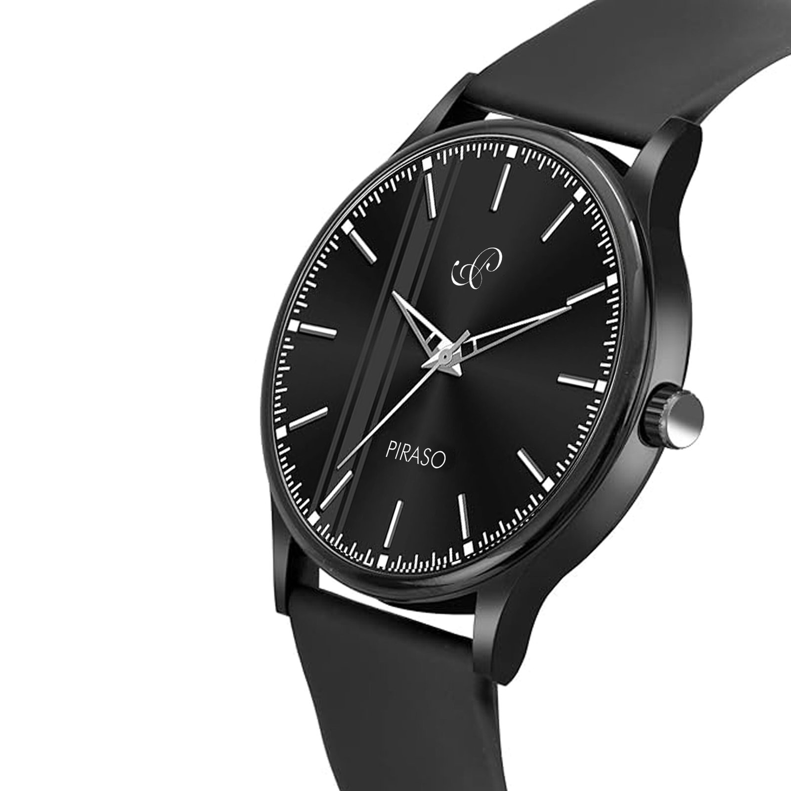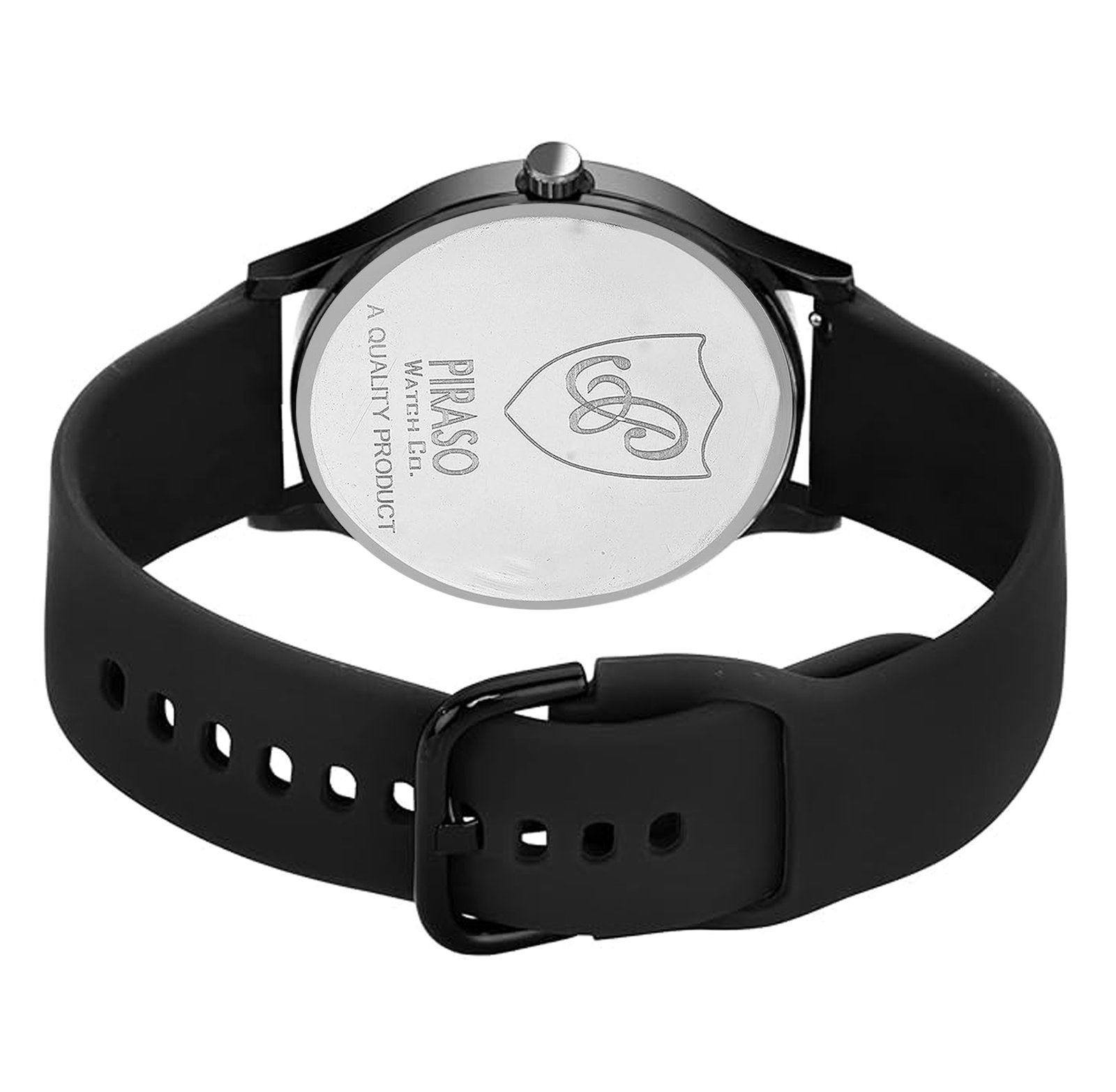 Piraso Black Dial & Black Silicone Strap Watch For Men-S 2025 BLACK
