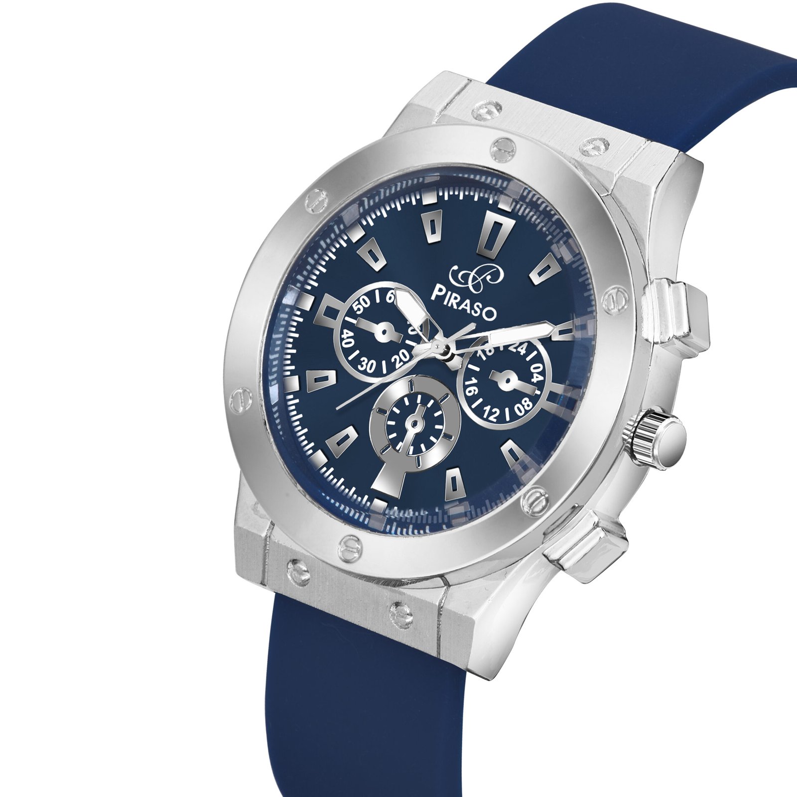 Piraso Blue Dial Analog Watch & Blue Silicone Strap Watch For Men-HUB 8905 SILVER BLUE SILICONE STRAP