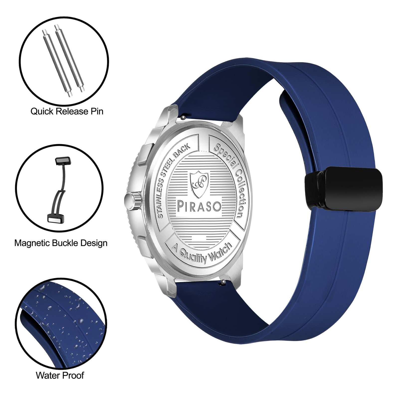 Piraso Blue Dial & Blue Silicone Magnetic Lock Strap Analog Watch For Men-973 2022 BLUE MAGNETIC STRAP
