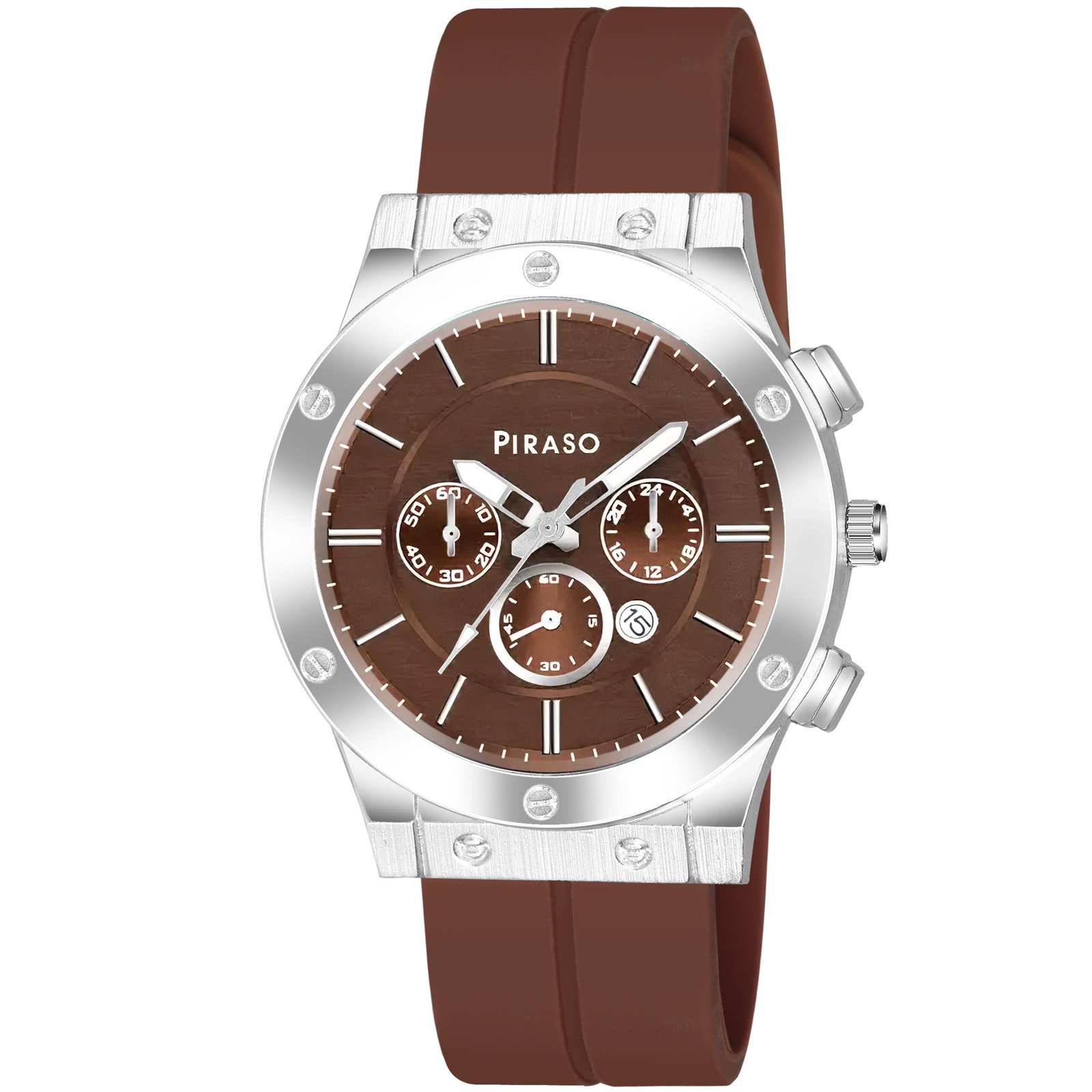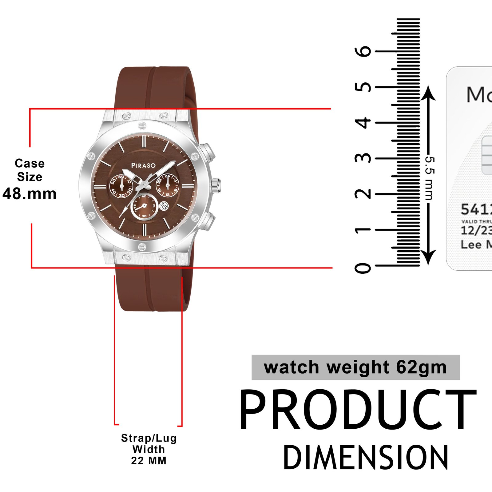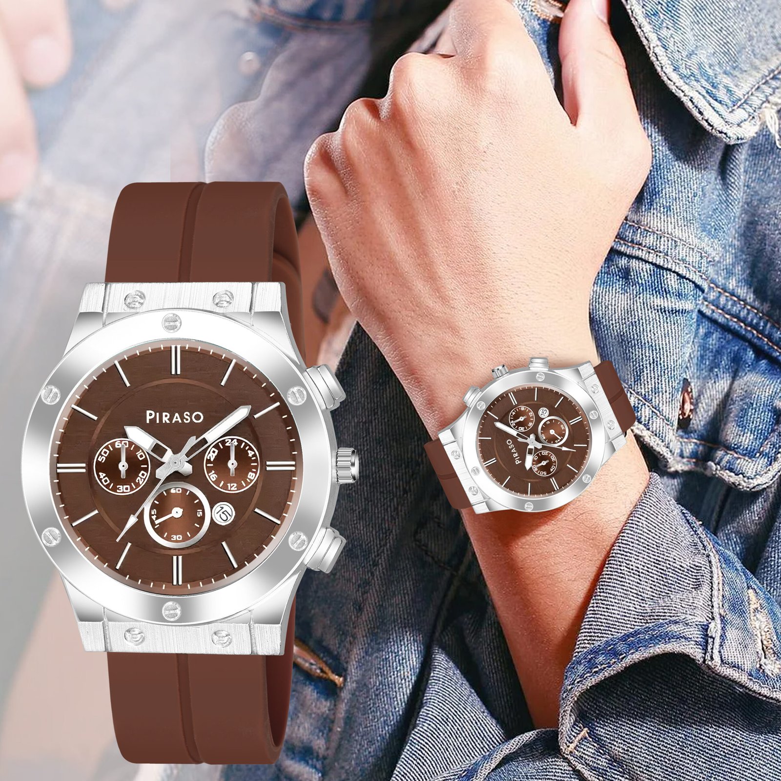 Piraso Brown Date Dial & Brown Silicone Magnetic Lock Strap Analog Watch For Men-HUB 2022 SILVER BROWN MAGNETIC STRAP