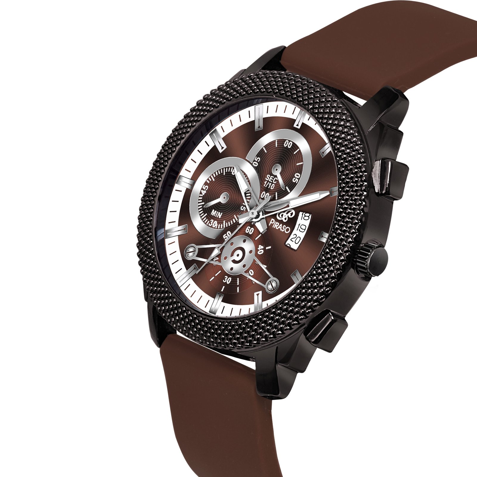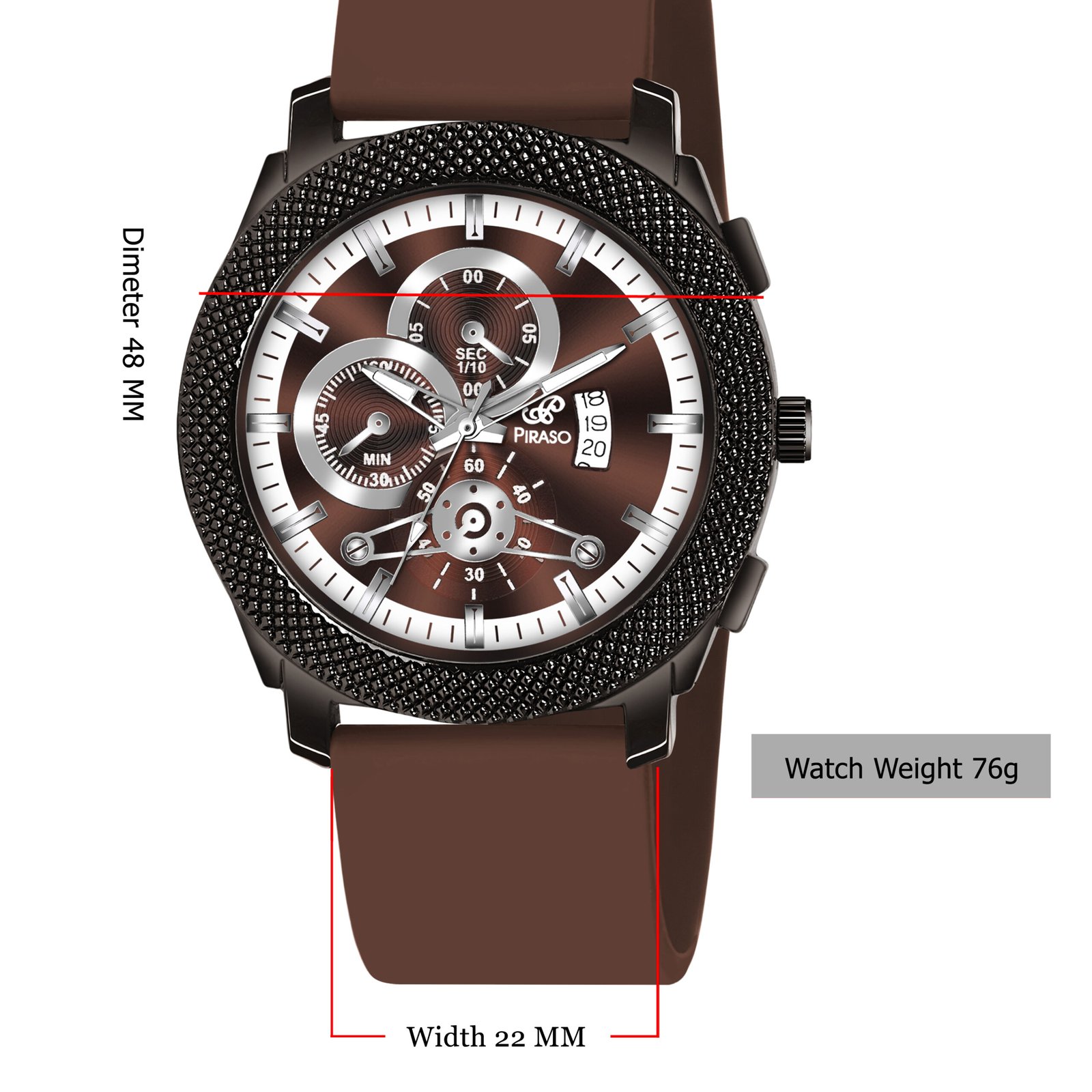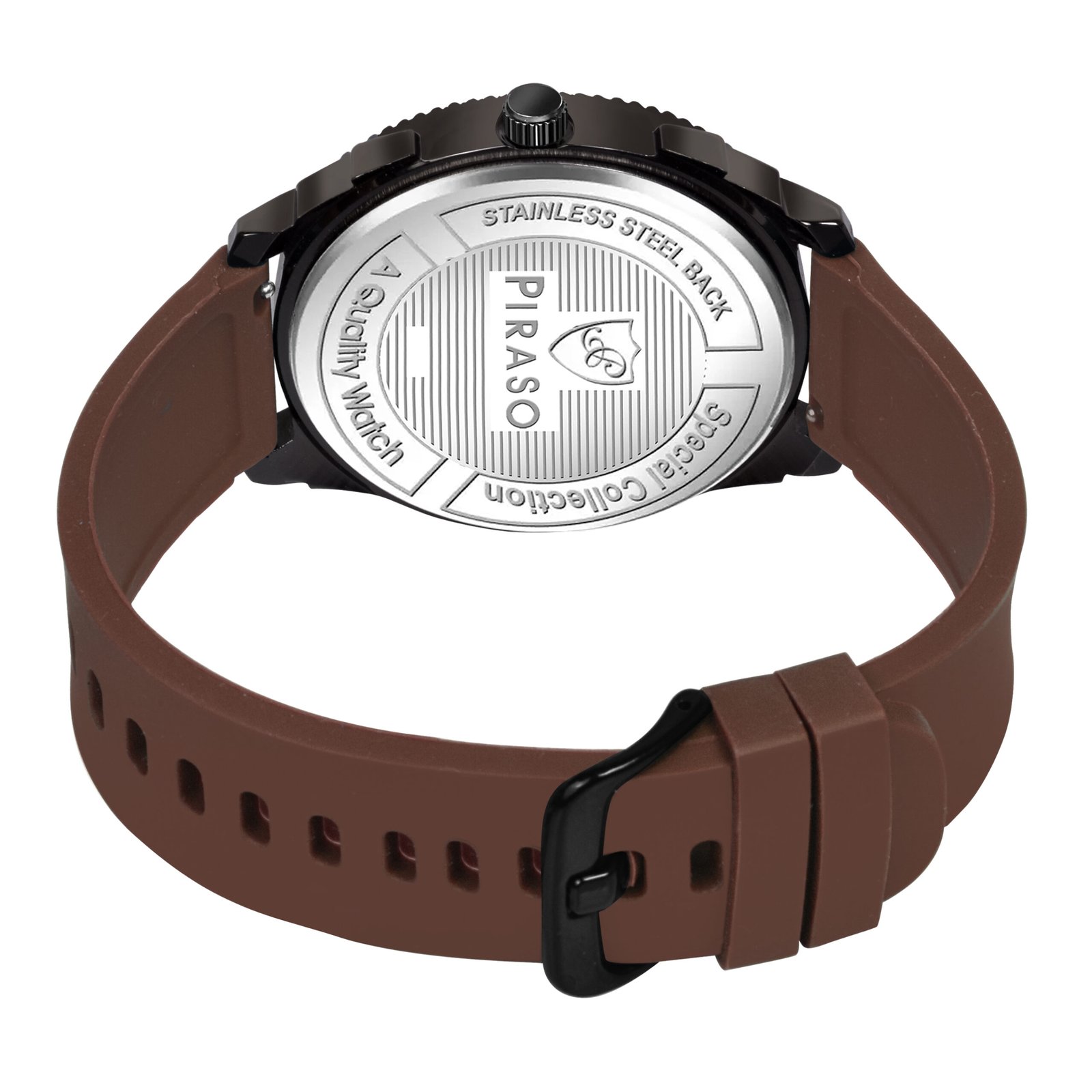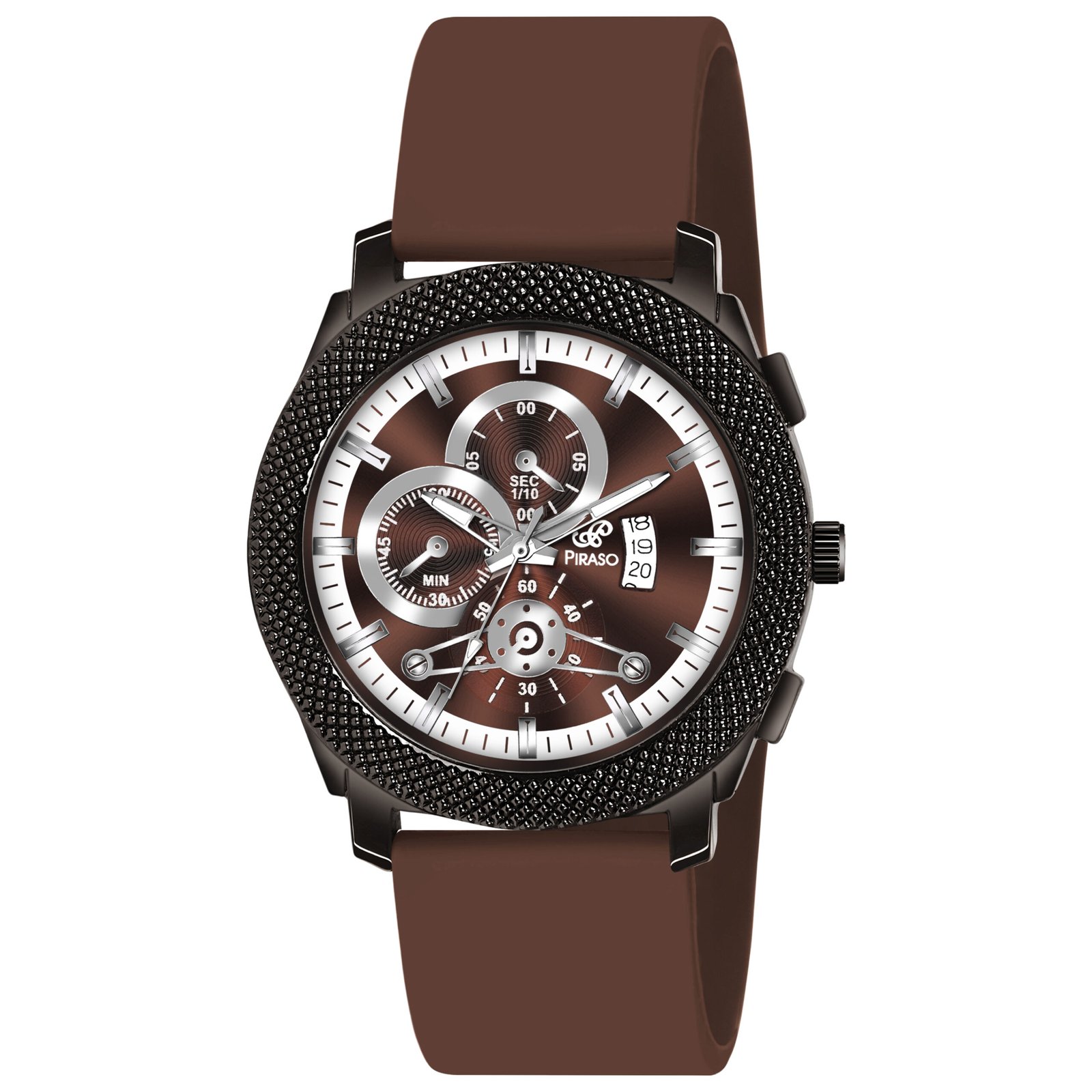 Piraso Brown Date Dial & Brown Silicone Strap Analog Watch For Men-972 2025 BROWN SILICONE STRAP