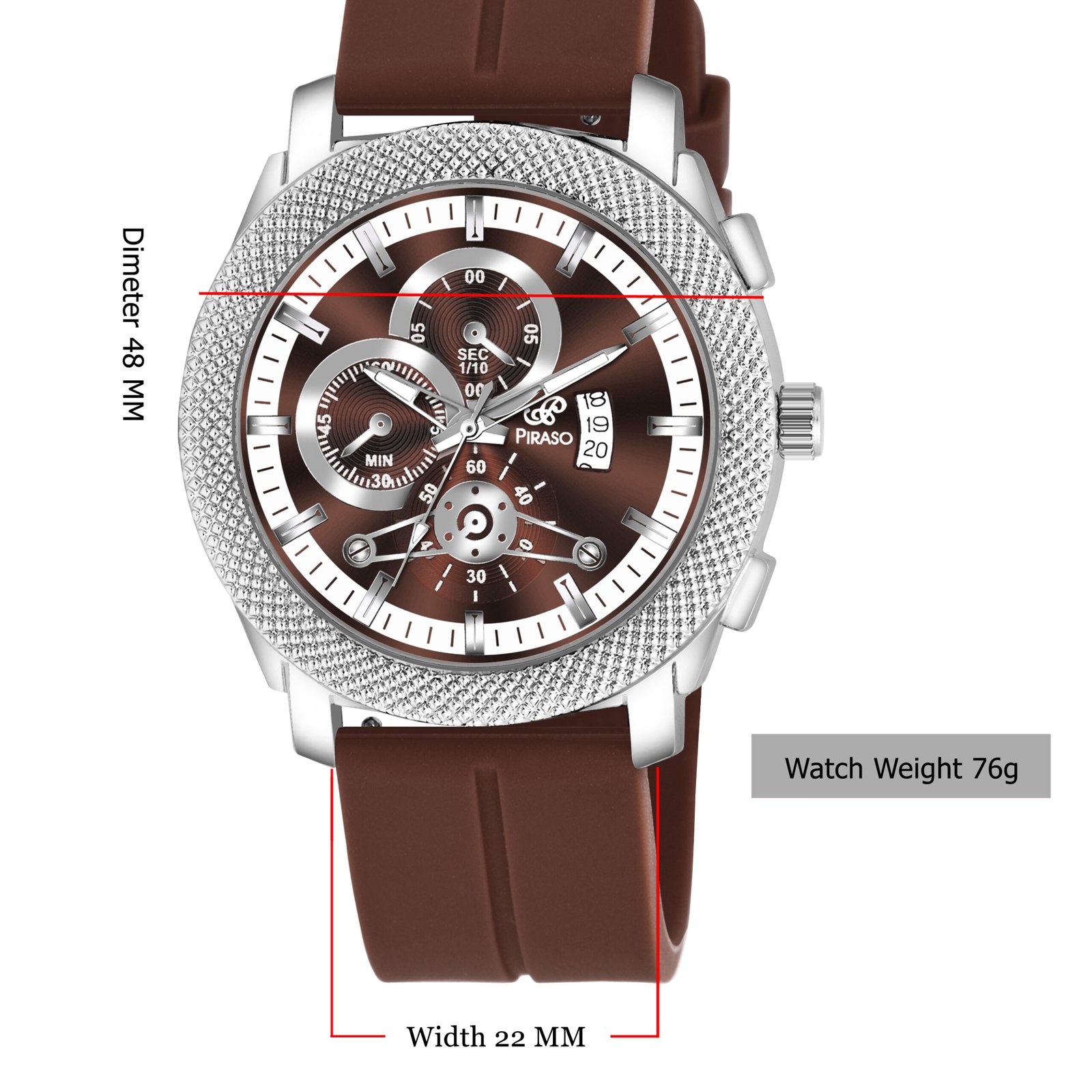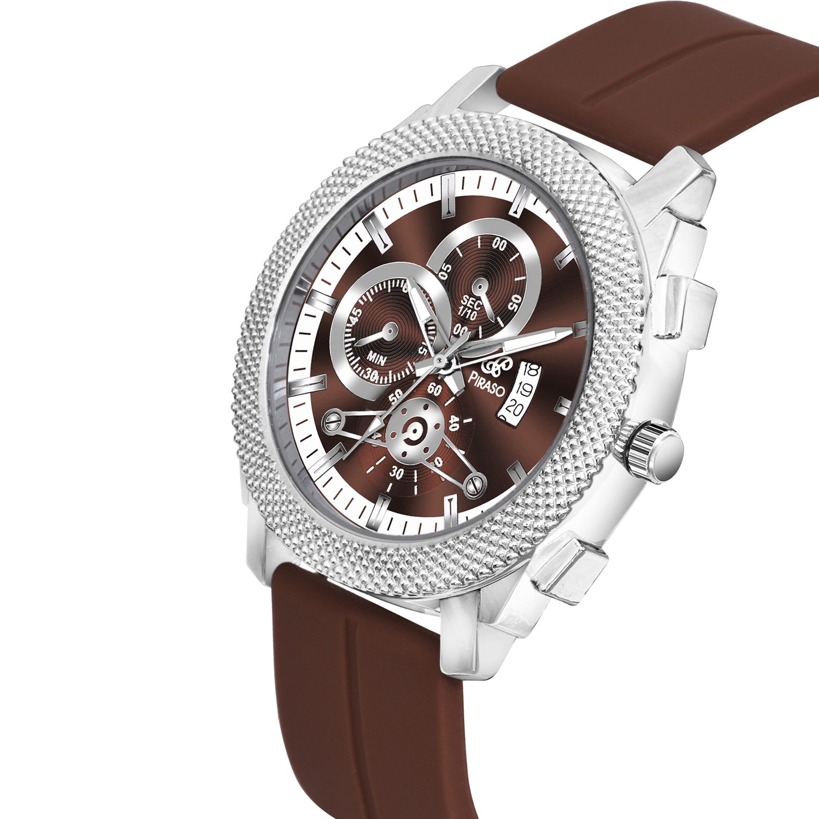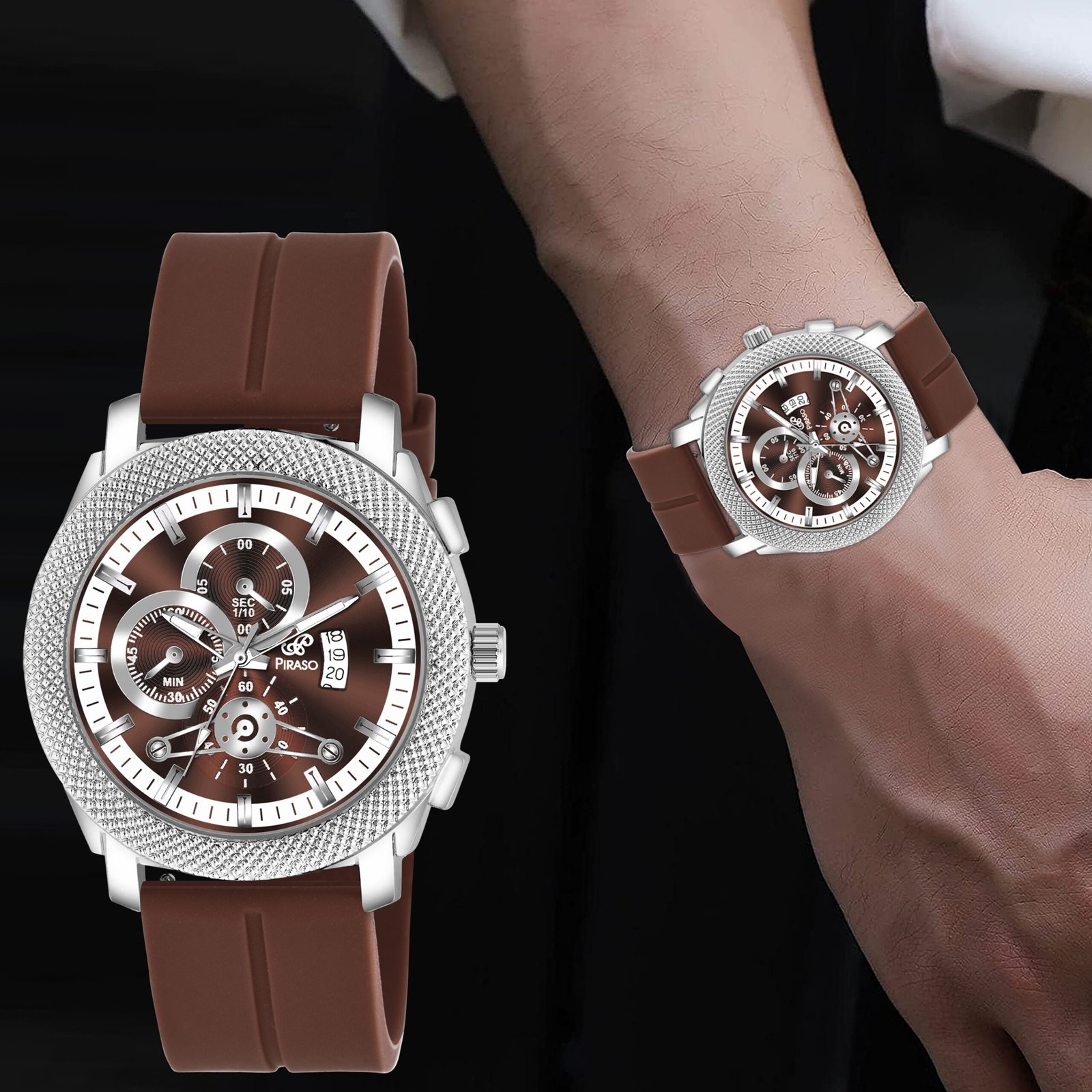 Piraso Brown Date Dial With Brown Silicone Strap Analog Watch For Men-973 2025 SILVER BROWN SILICONE STRAP