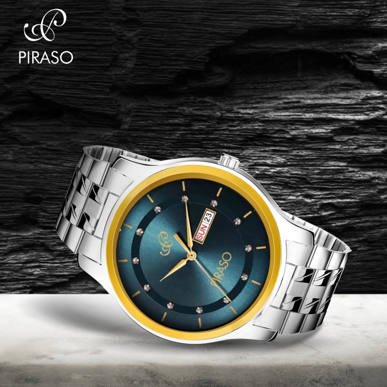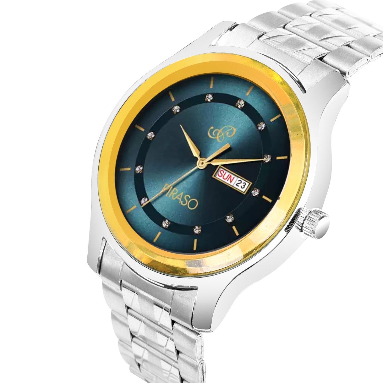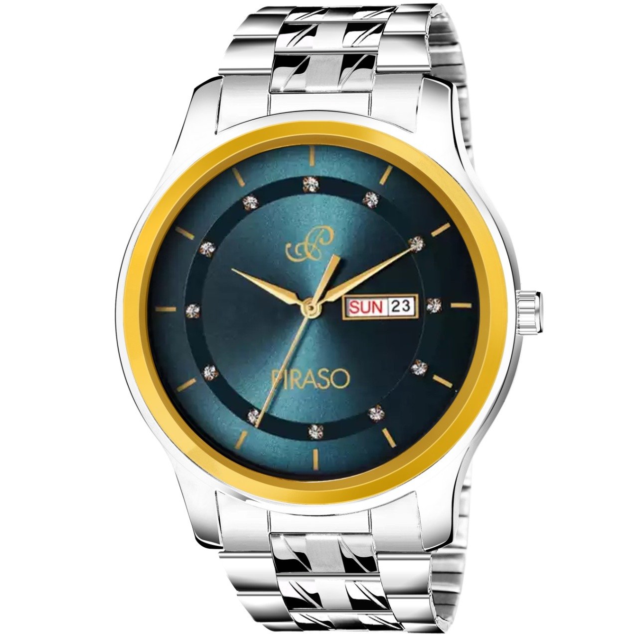 PIRASO Day & Date Blue Dial and golden Silver Chain Analog Watch For Men-D&D C22 GOLD BLUE