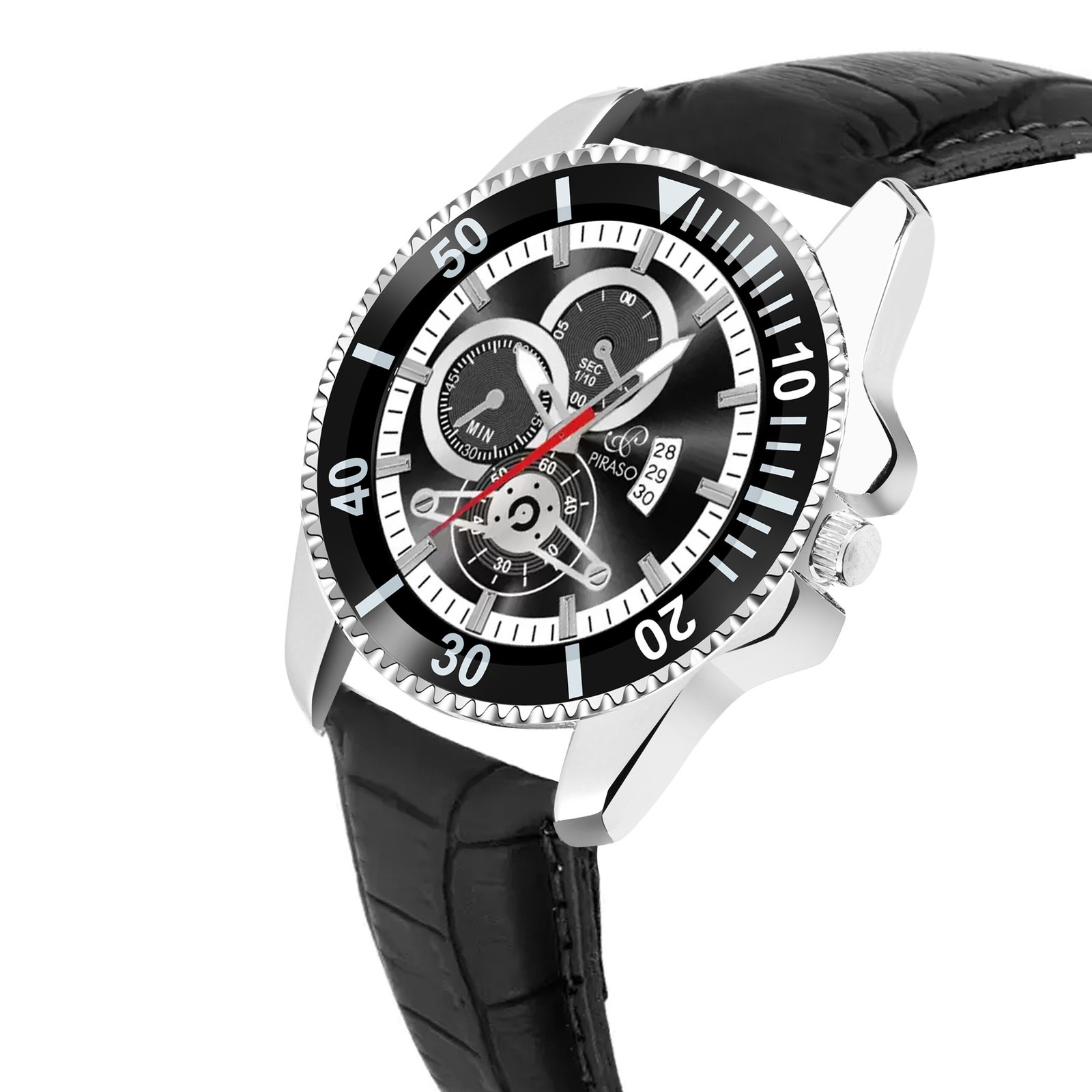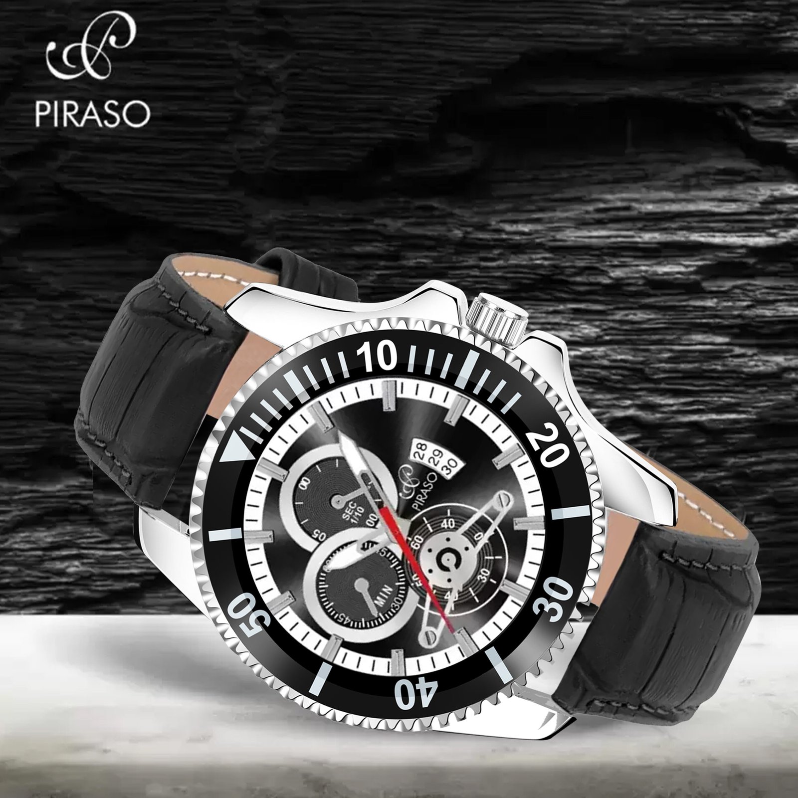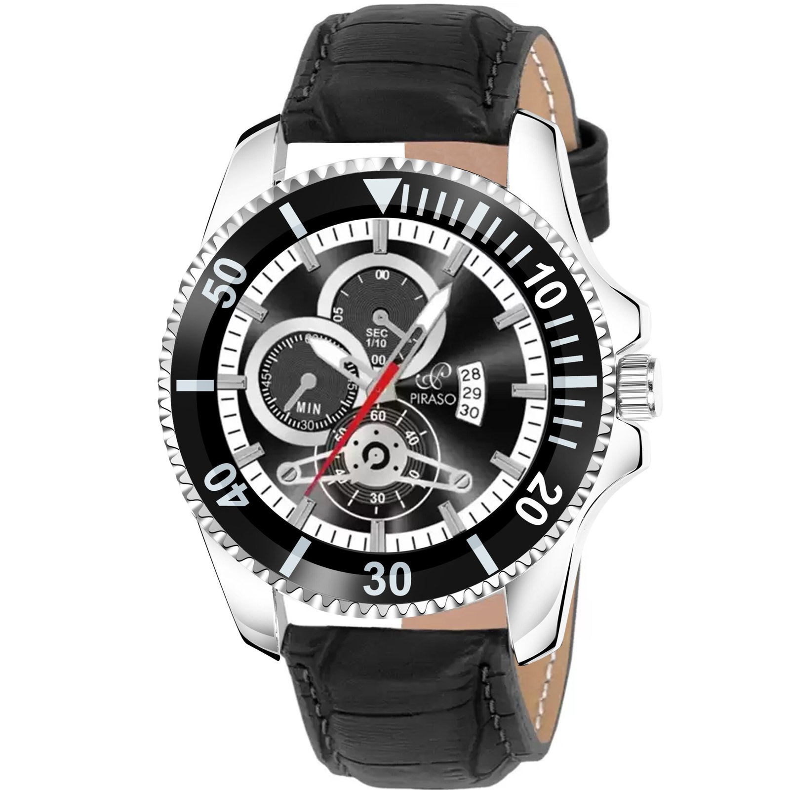 Piraso Date Black Dial And Black Strap Watch for Men-ROL-X 2025 BLACK STRAP