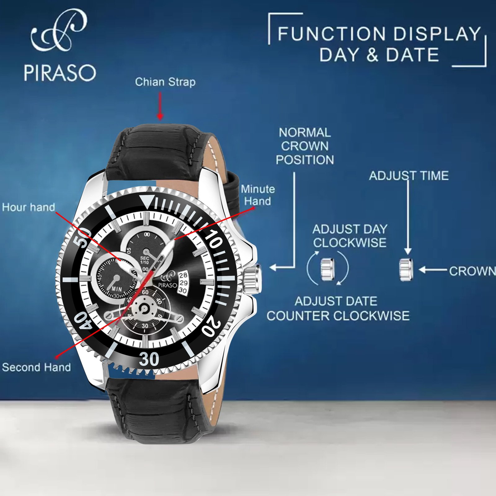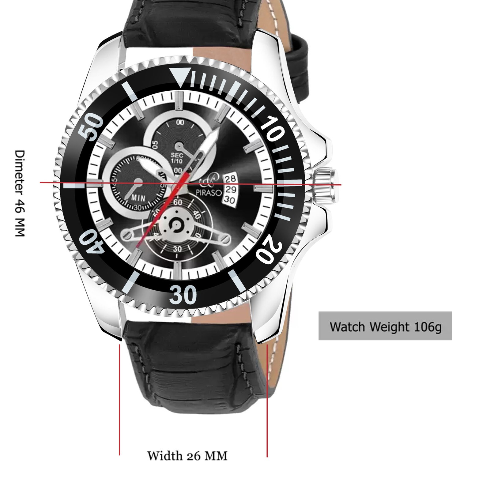 - Band Color: Black, Band Material: Leather