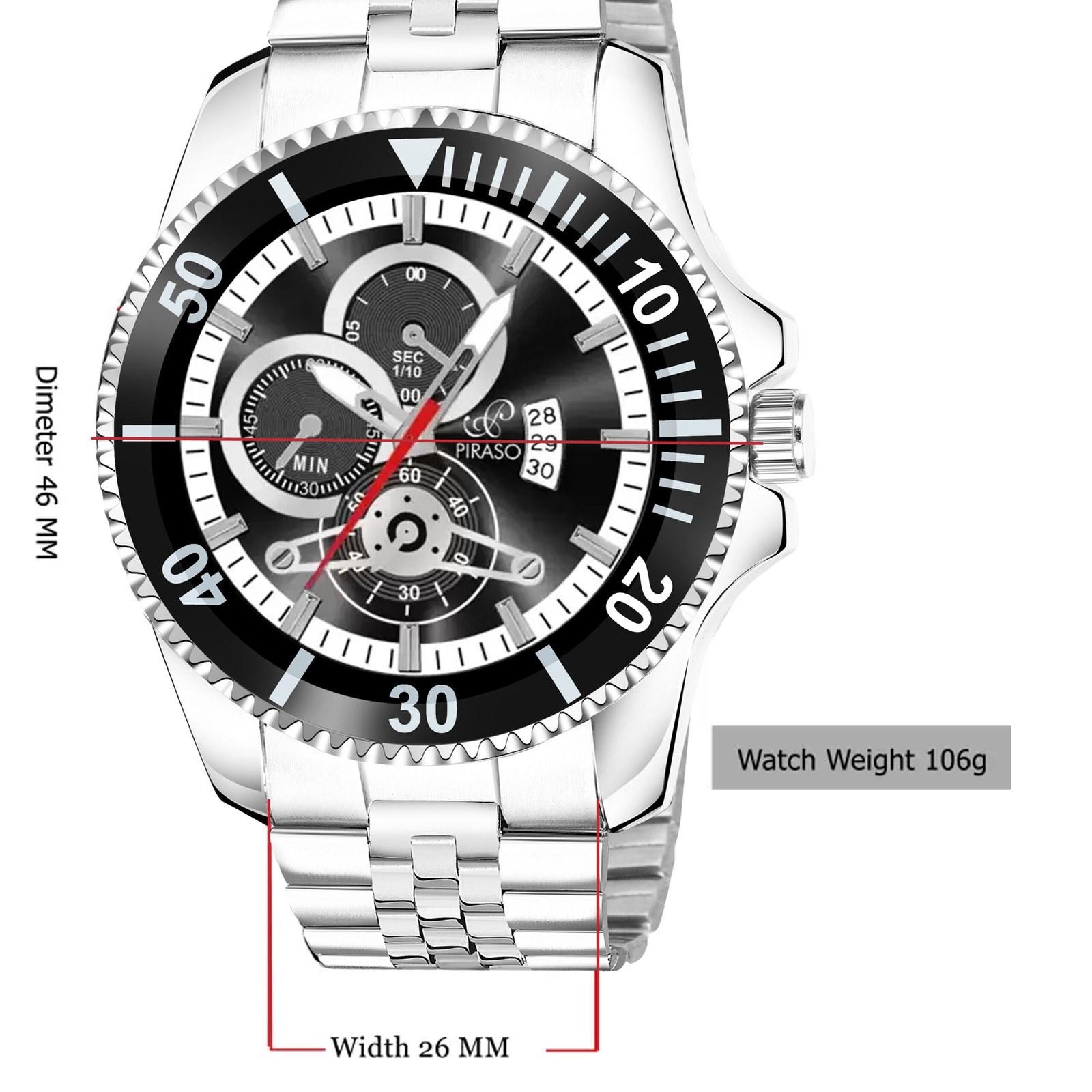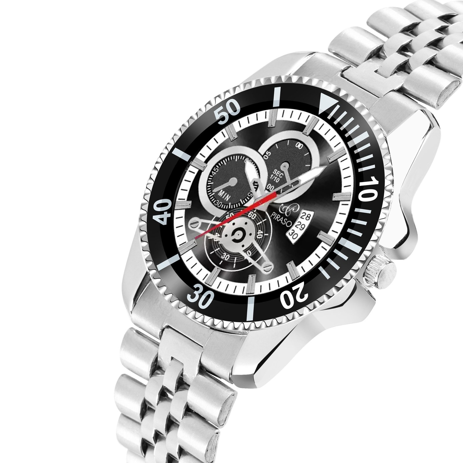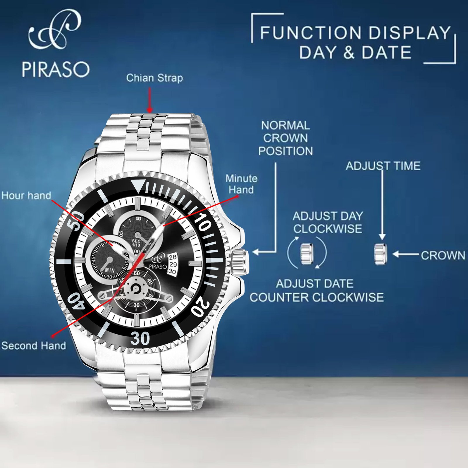Piraso Date Black Dial And Silver Chain Analog Watch for Men-ROL-X 2025 BLACK SILVER