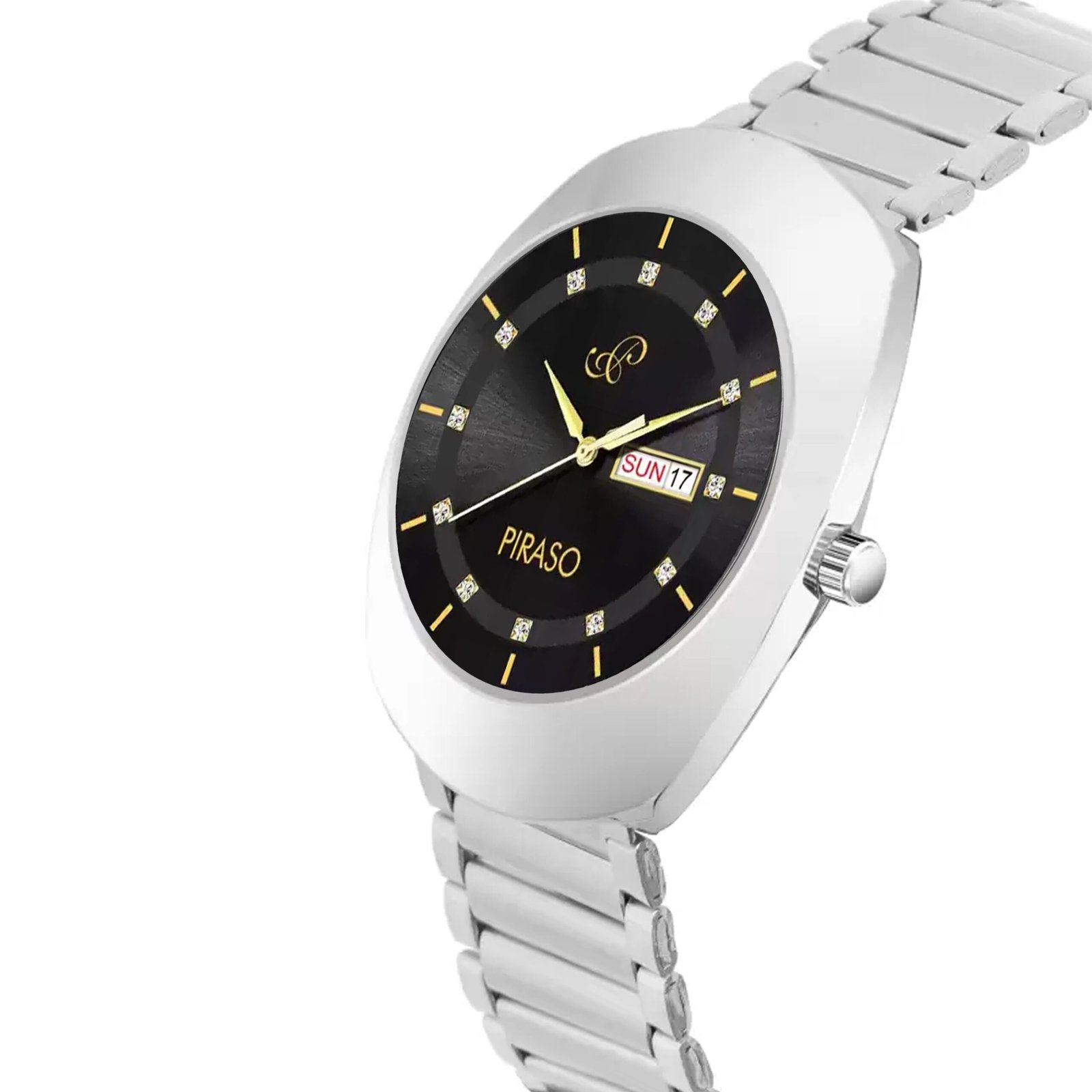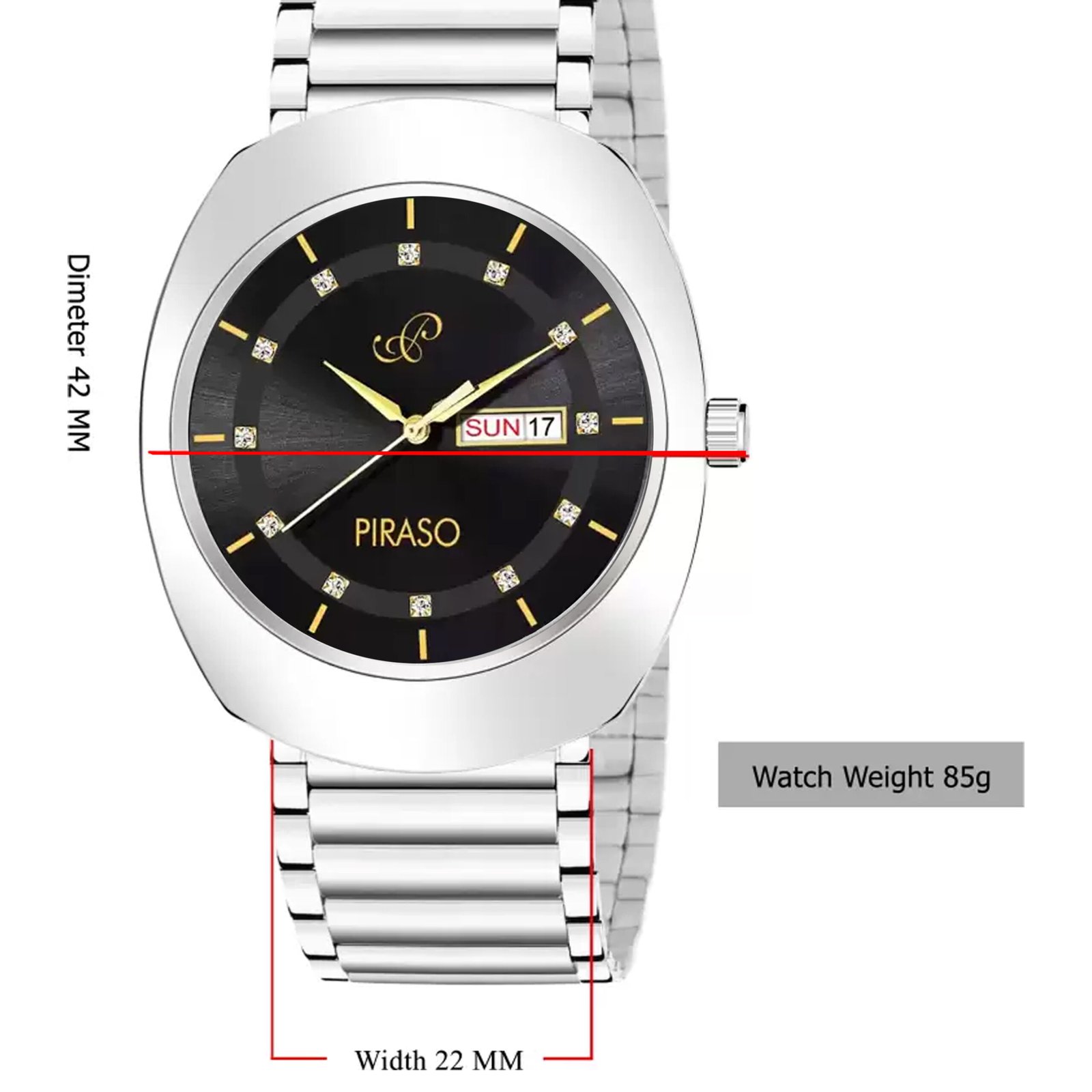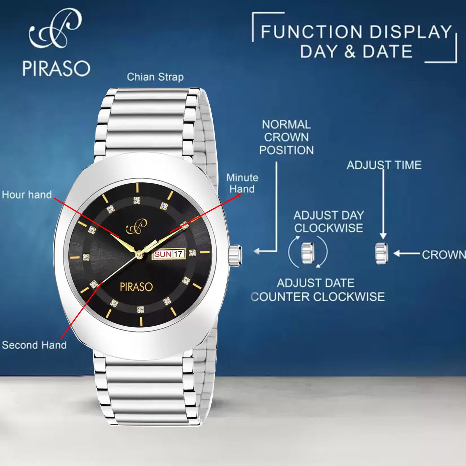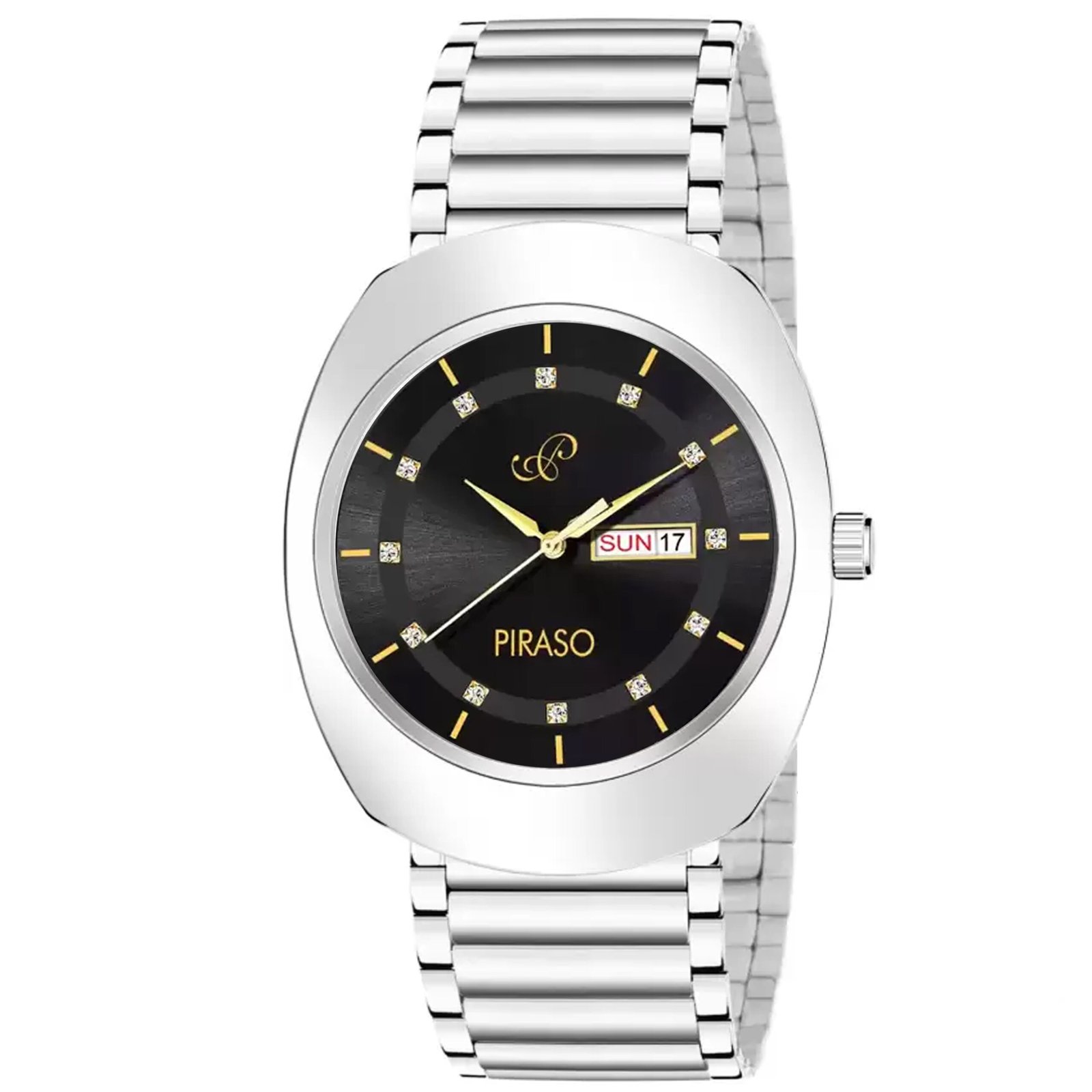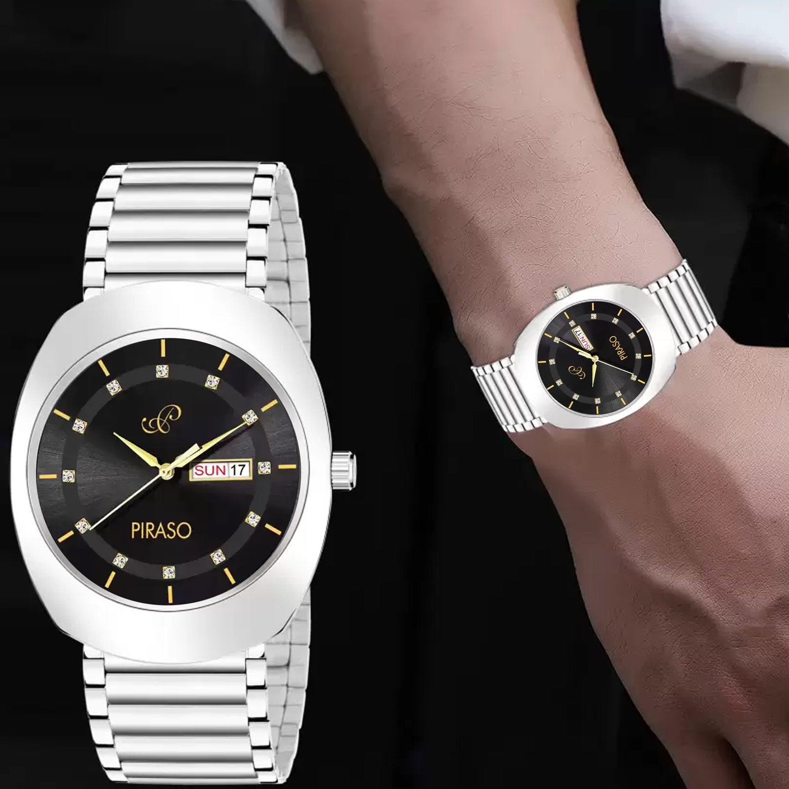 PIRASO DATE BLACK DIAL & SILVER CHAIN ANALOG WATCH FOR MEN-RA-DO C27 BLACK SILVER