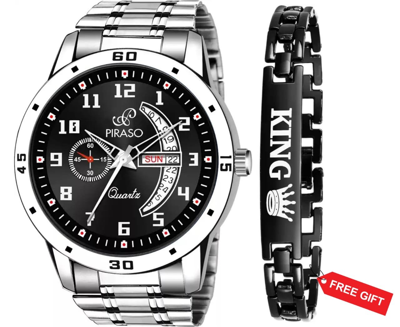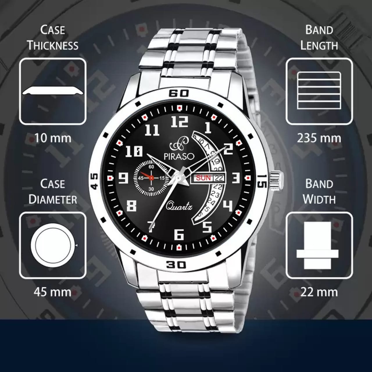 PIRASO Day & Date Black Dial & Stainless Steel Chain Analog Watch For Men-PR2727 BLACK