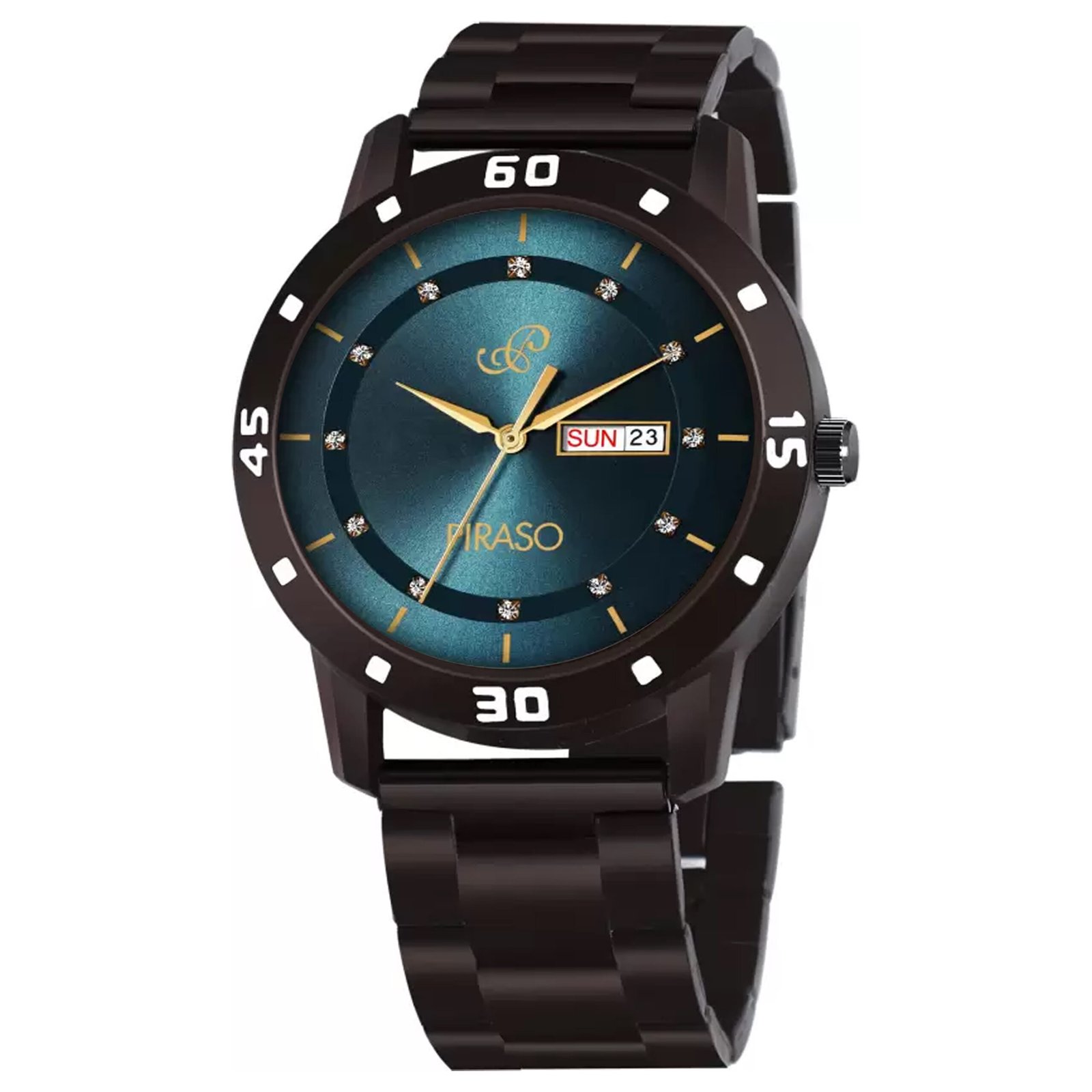 PIRASO DAY & DATE BLUE DIAL & BROWN CHAIN FOR MEN-D&D F92 BLUE