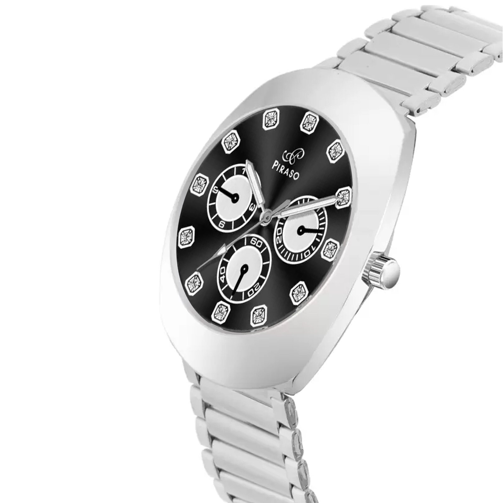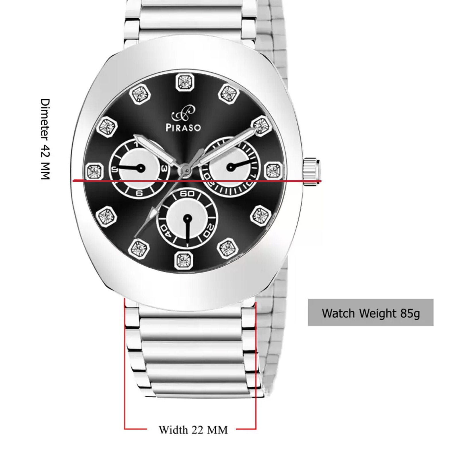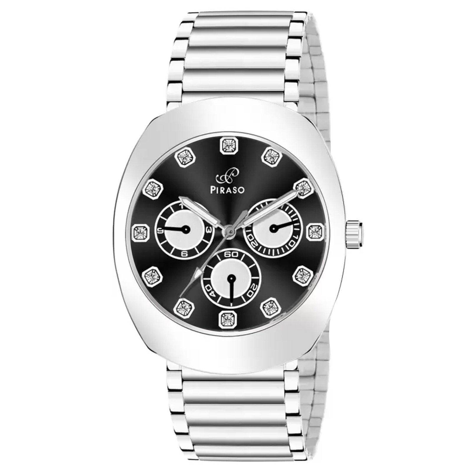 PIRASO Diamond Black Dial & Silver Chain Analog Watch for Men-RA-DO 2026 BLACK SILVER