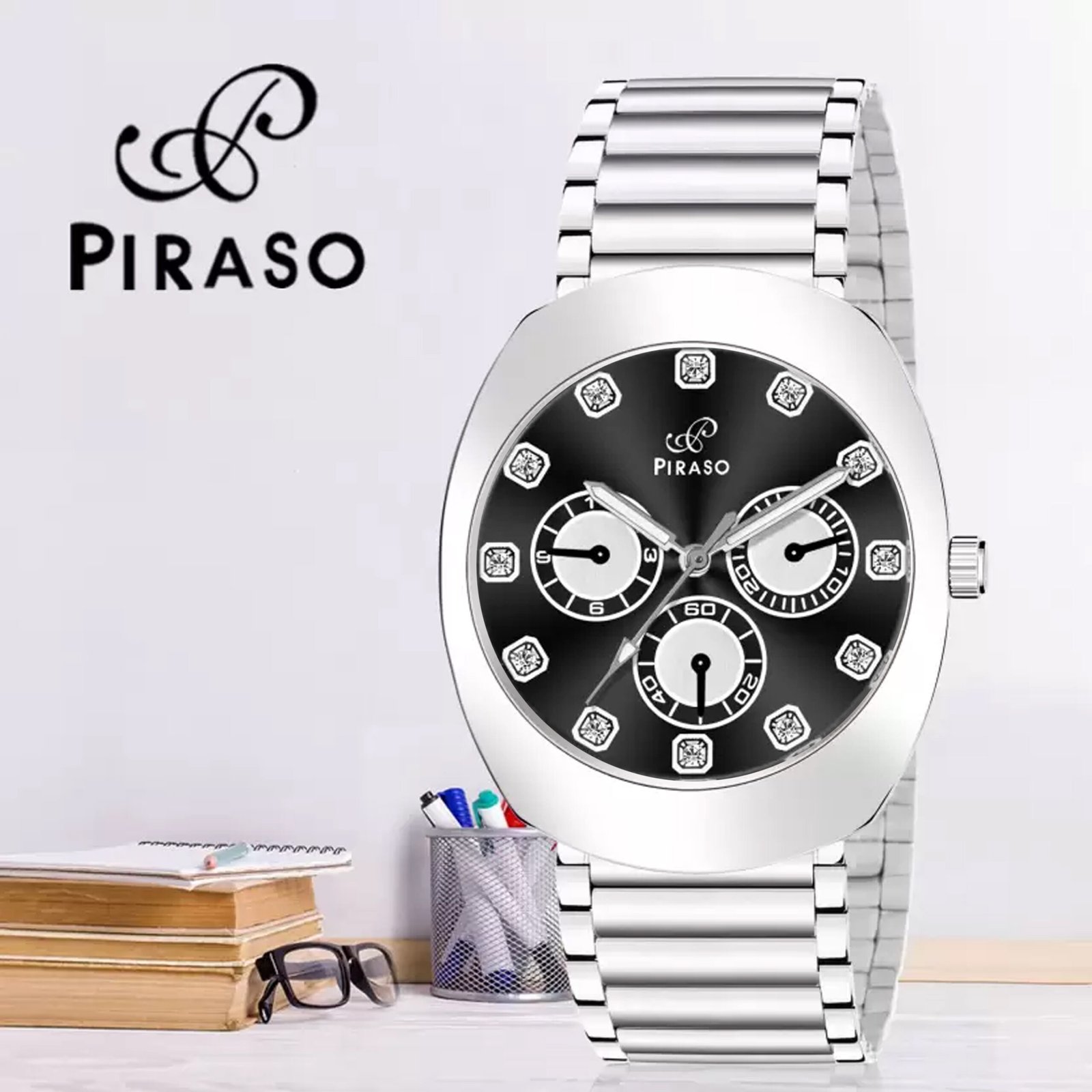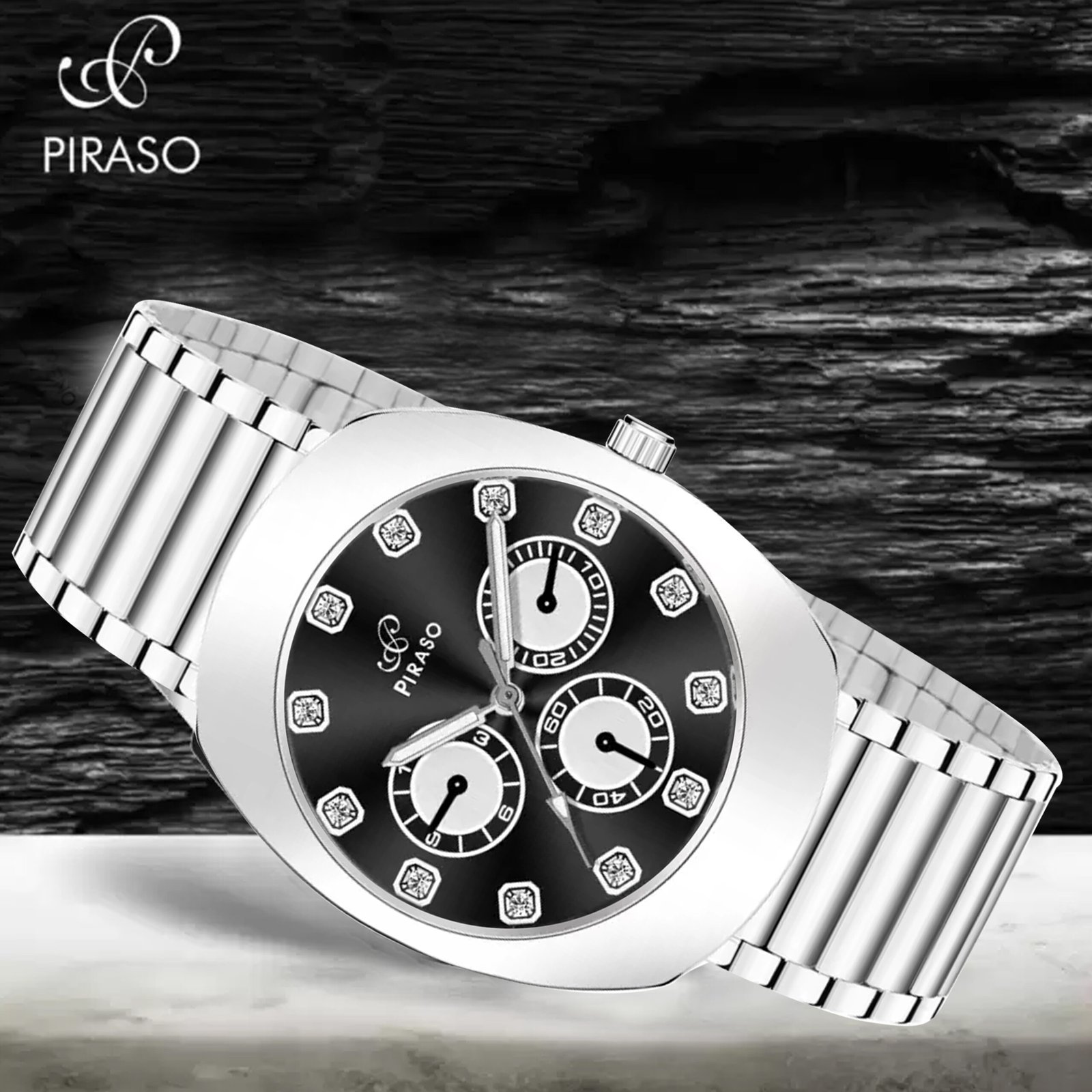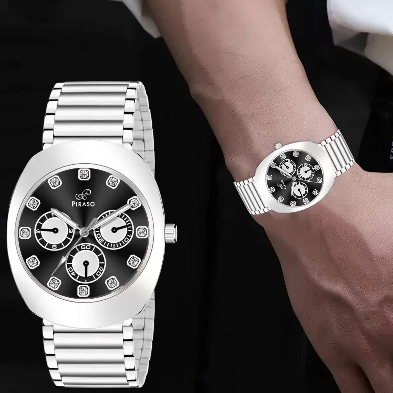 PIRASO Diamond Black Dial & Silver Chain Analog Watch for Men-RA-DO 2026 BLACK SILVER