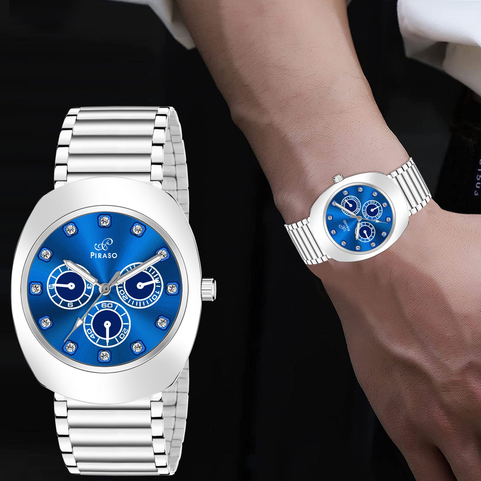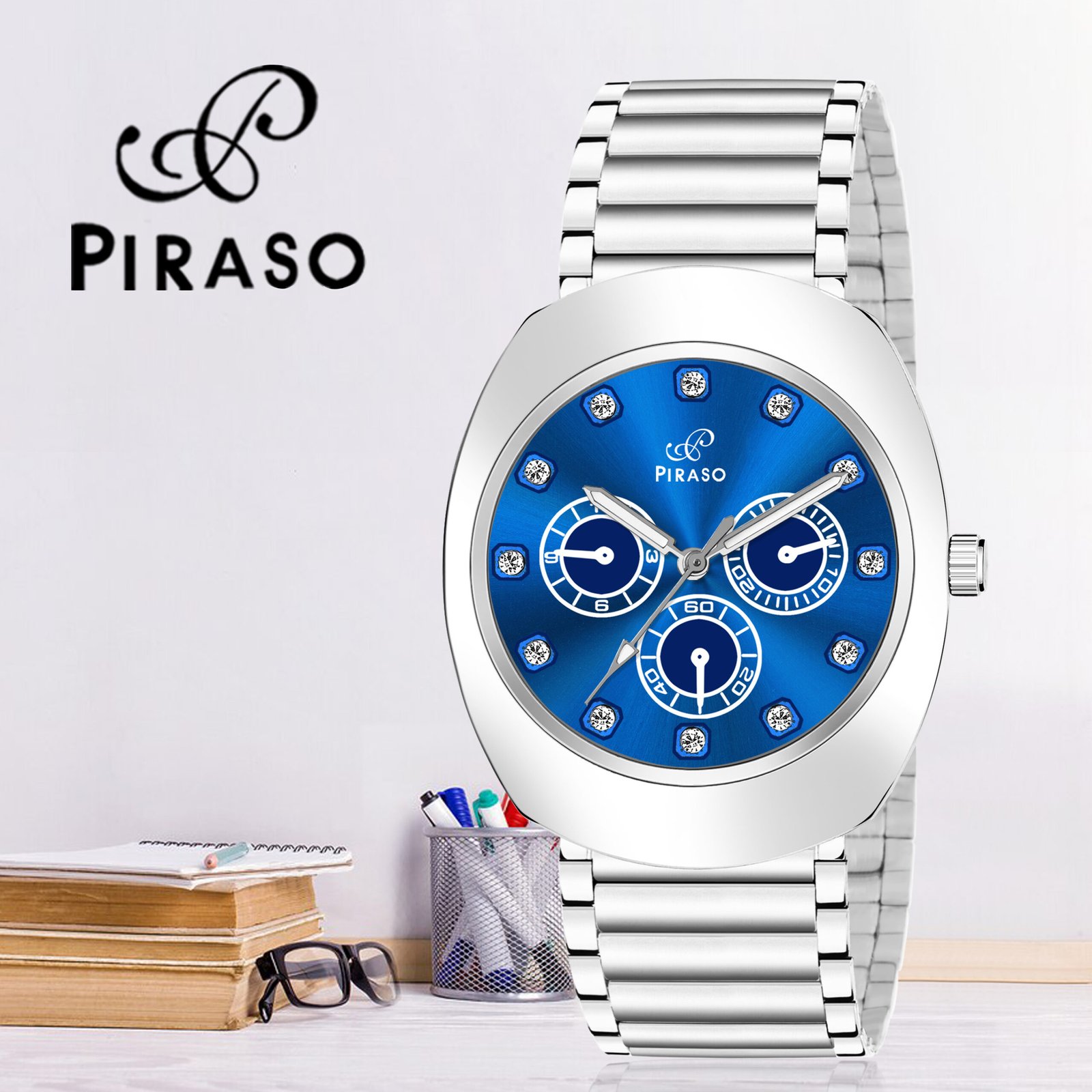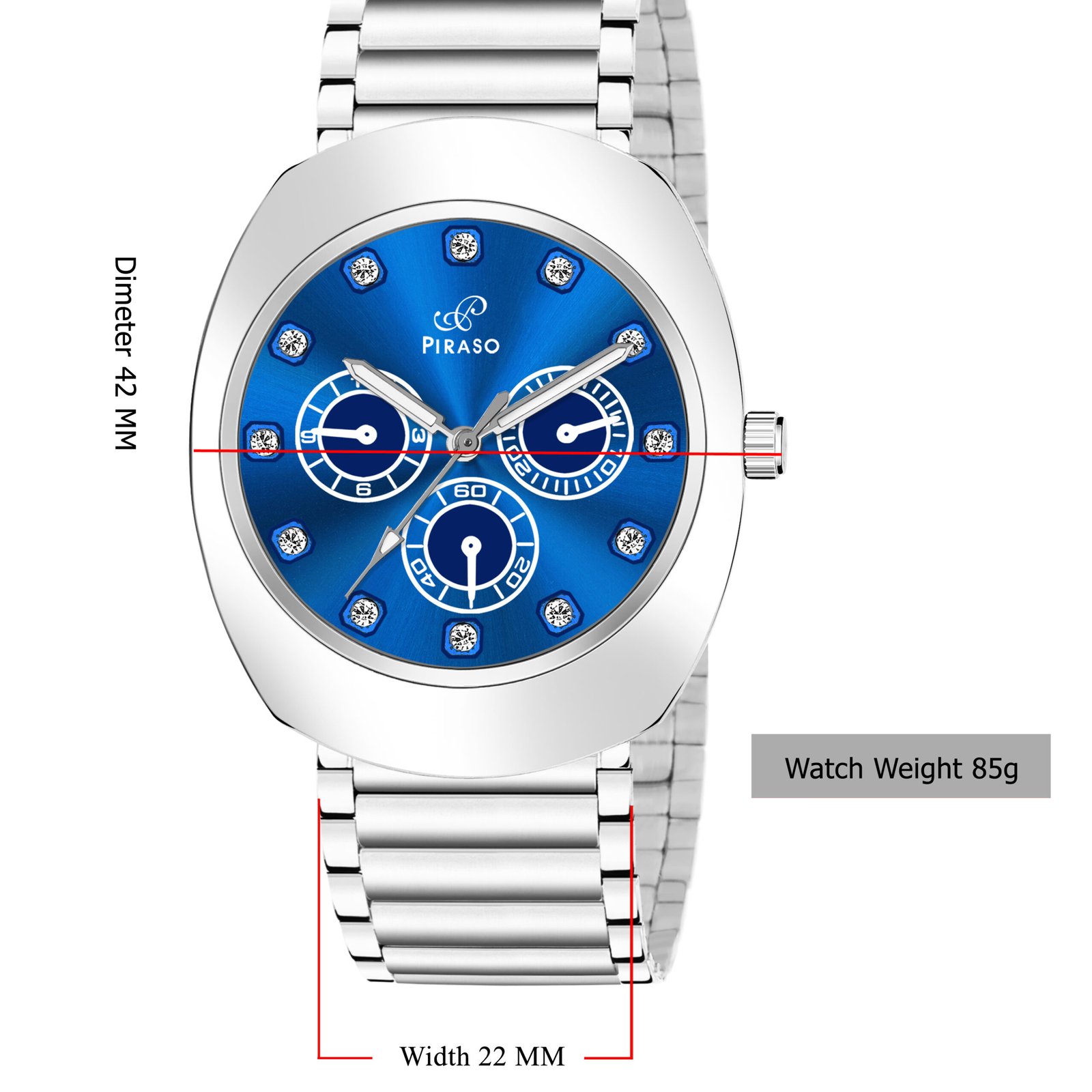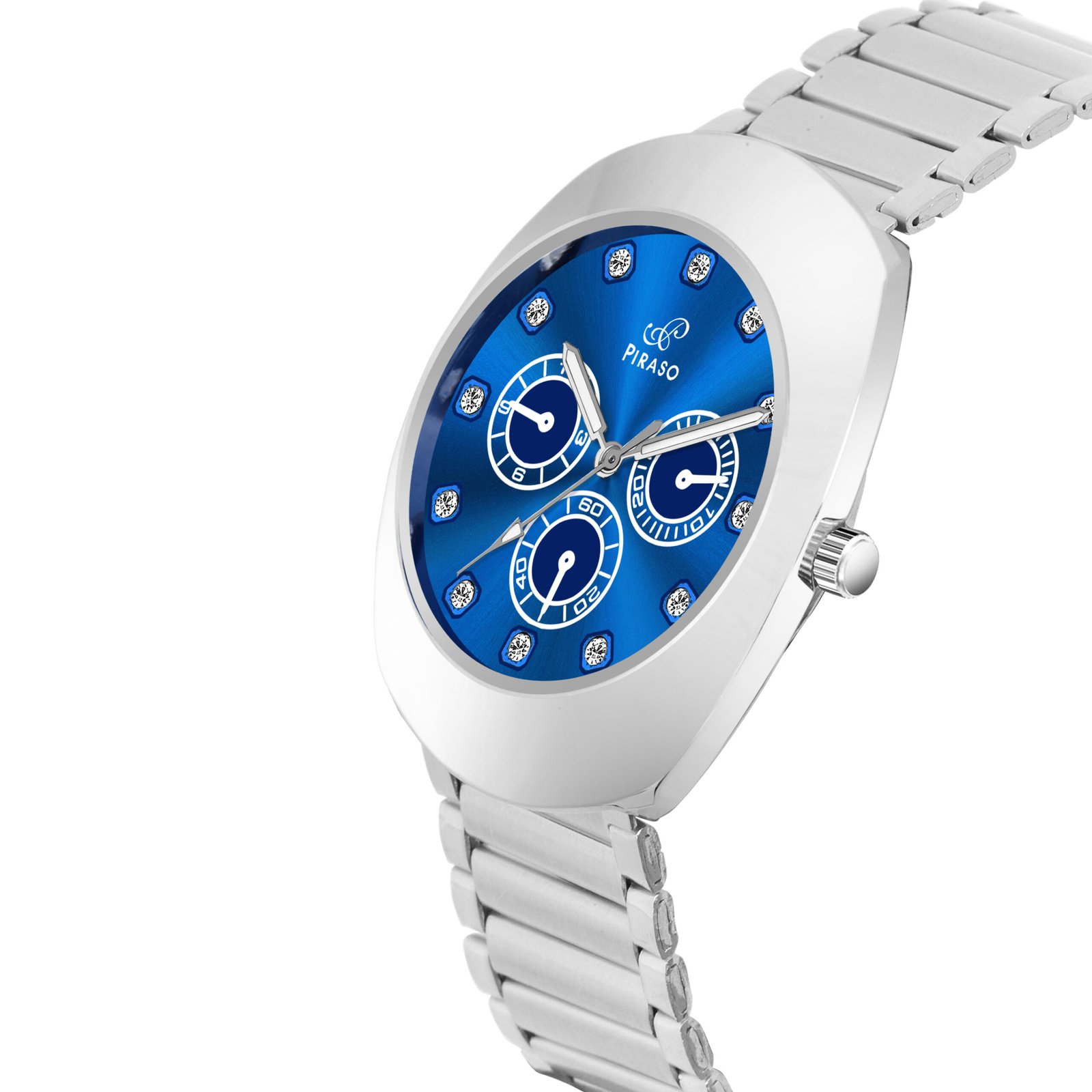 PIRASO Diamond Blue Dial & Silver Chain Analog Watch for Men-RA-DO 2026 BLUE SILVER