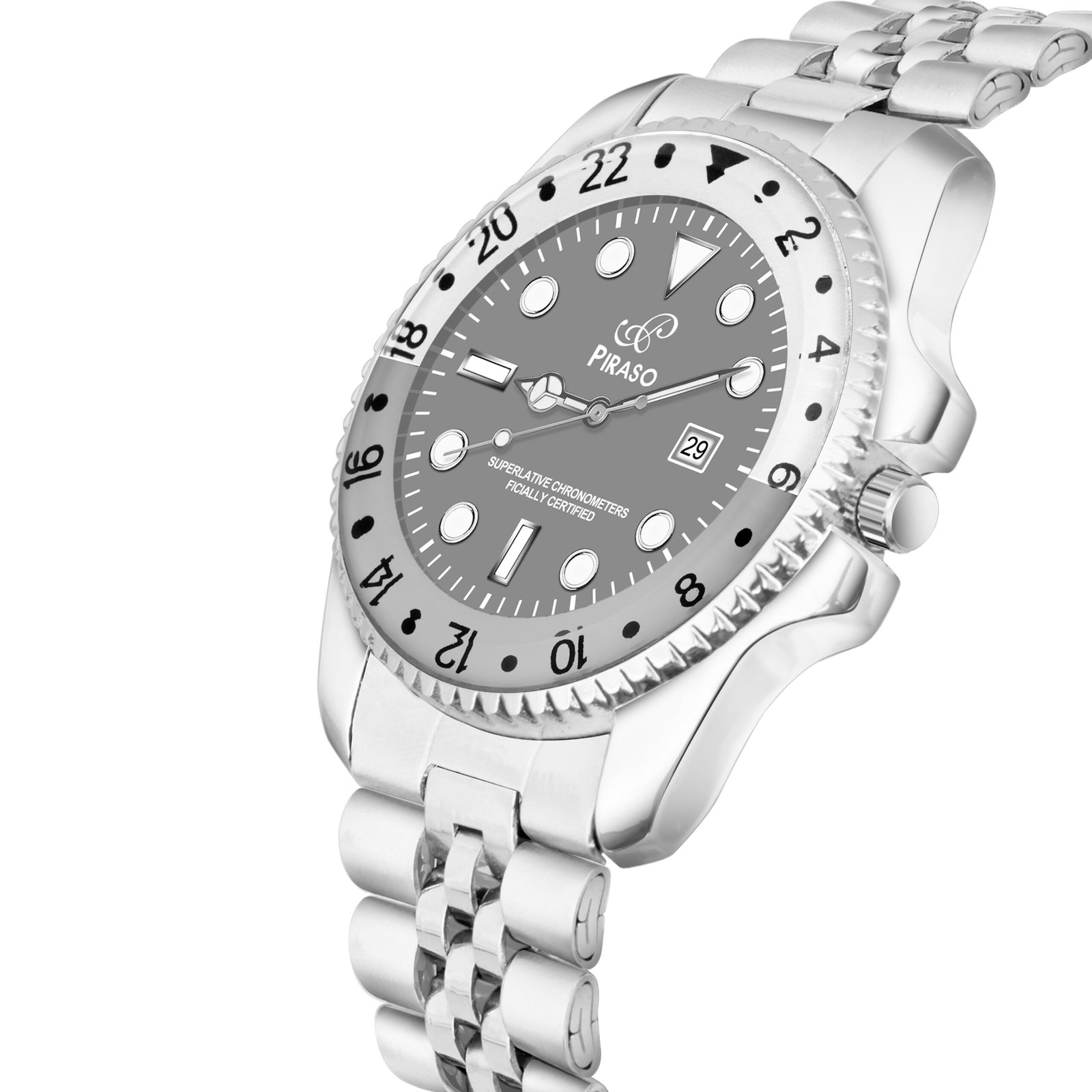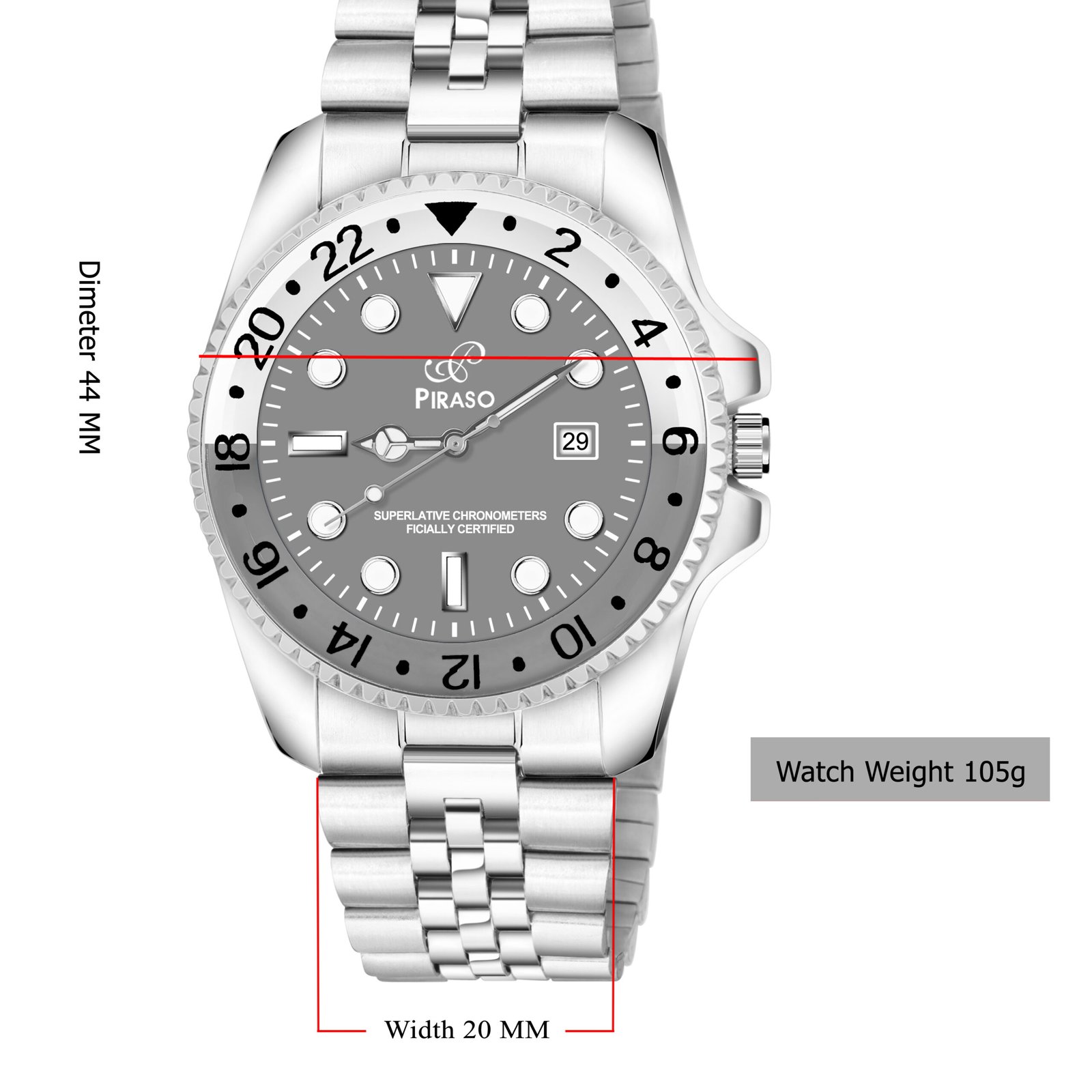 Piraso Grey Dial And Silver Chain Analog Watch for Men-ROL-X OG GREY SILVER