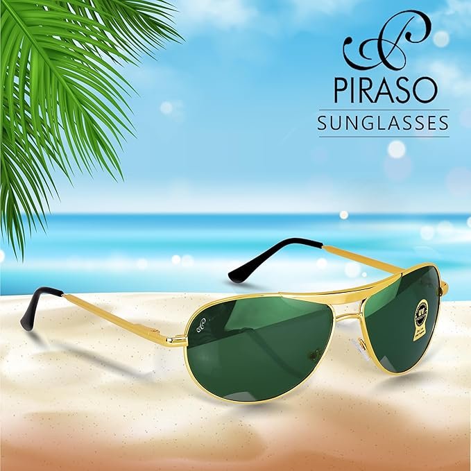 PIRASO oval green lens & gold frame sunglasses For Men-3833-OVAL-GREEN-GOLD-B