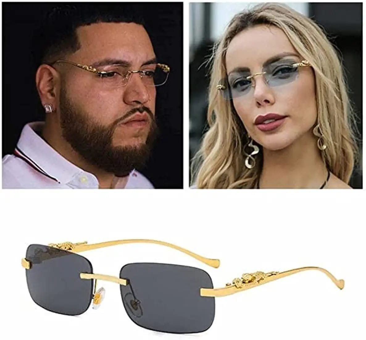 - Gold colored frame with Blue lenses Ideal for: Men Women Both