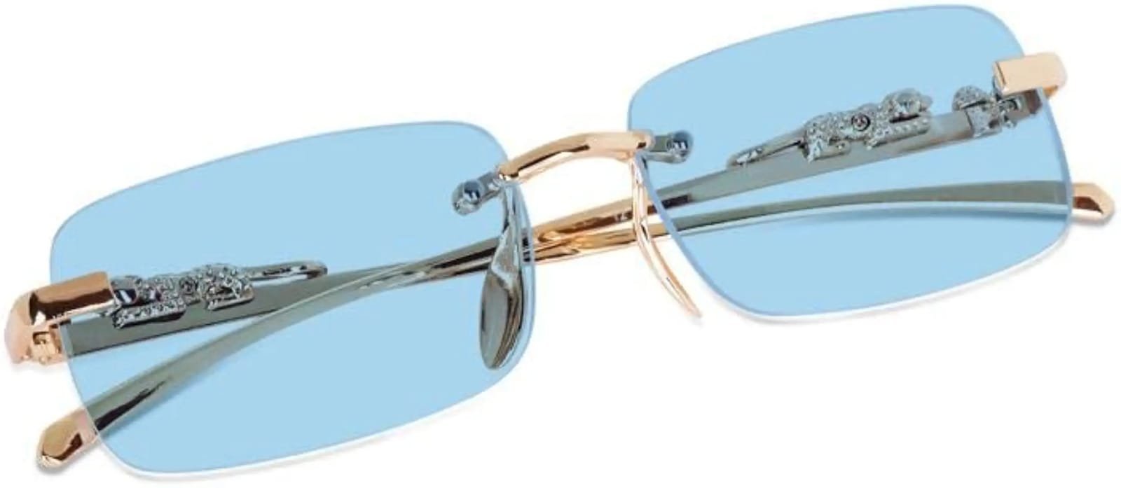 PIRASO Rectangular Blue lens & Gold Frame Sunglass For Men & Women-PAI GOLDEN BLUE