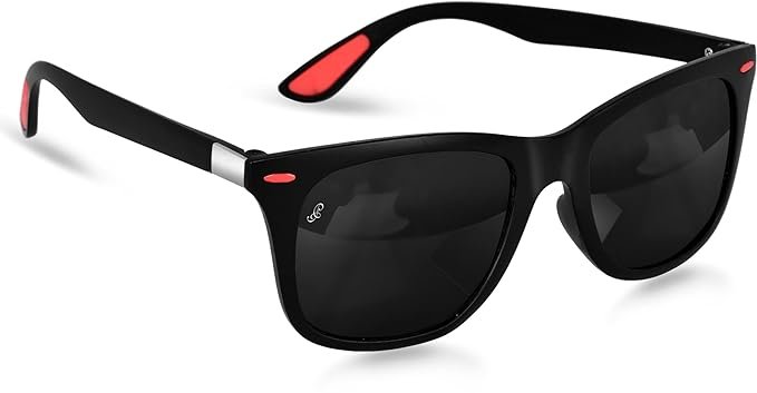 PIRASO Retro Square Black lens & Black frame Sunglasses For Men & Women-FT KC BLACK RED
