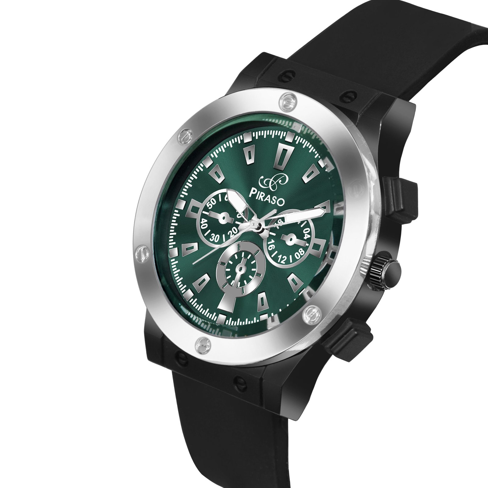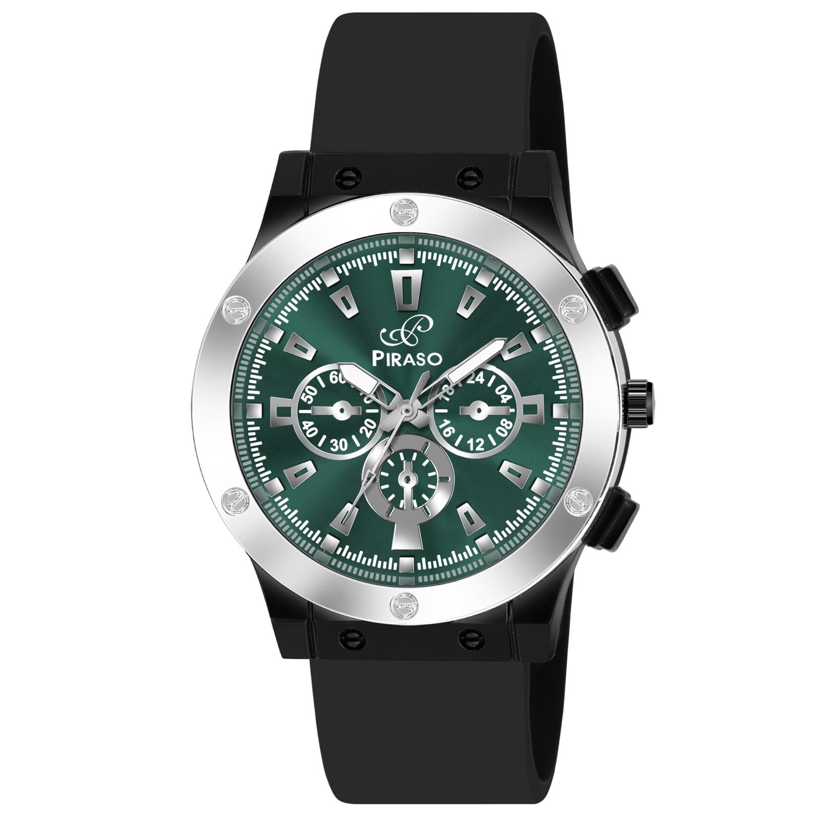 Piraso Turquoise Dial & Black Silicone Strap Analog Watch For Men-HUB 8905 TURQUOISE SILVER BLACK SILICONE STRAP