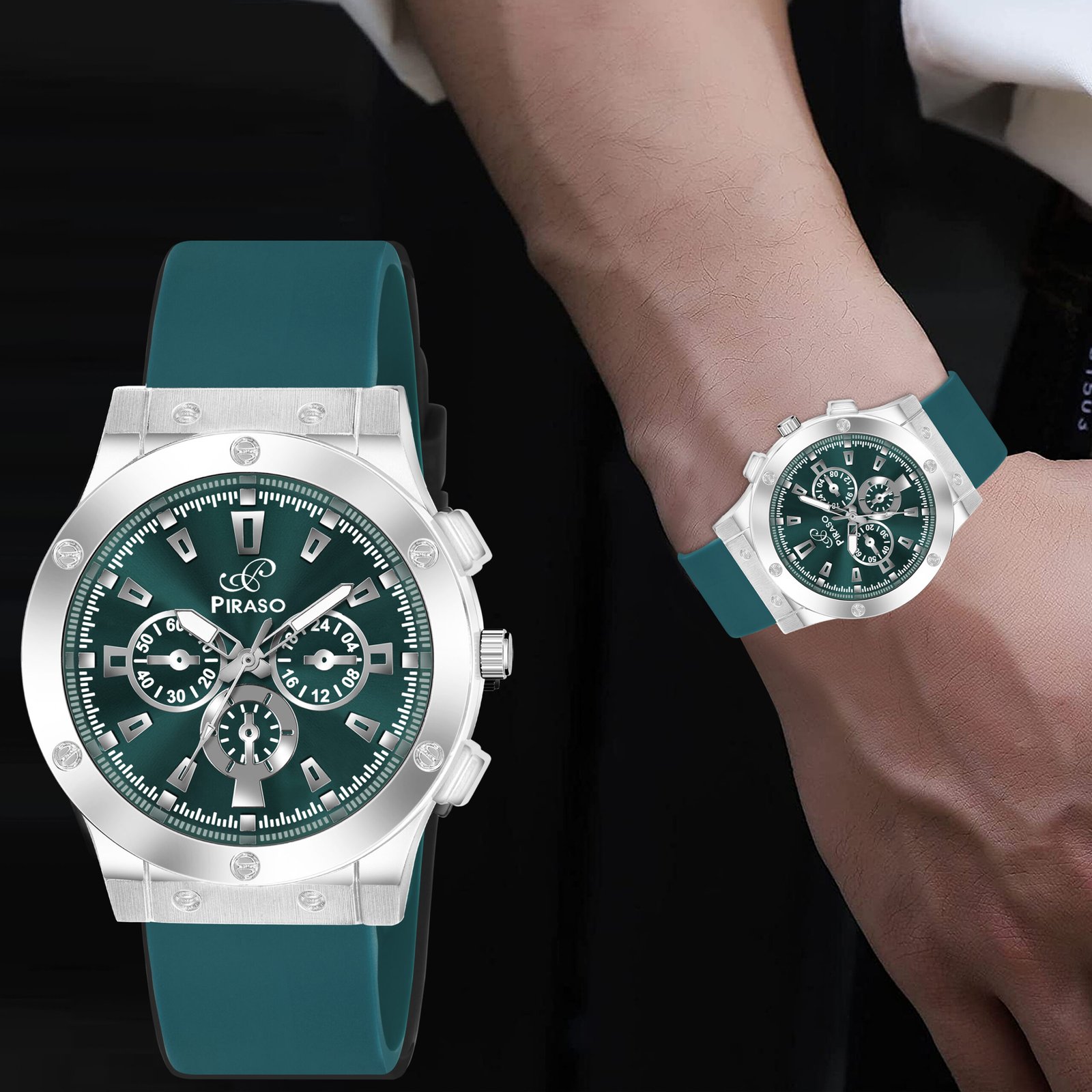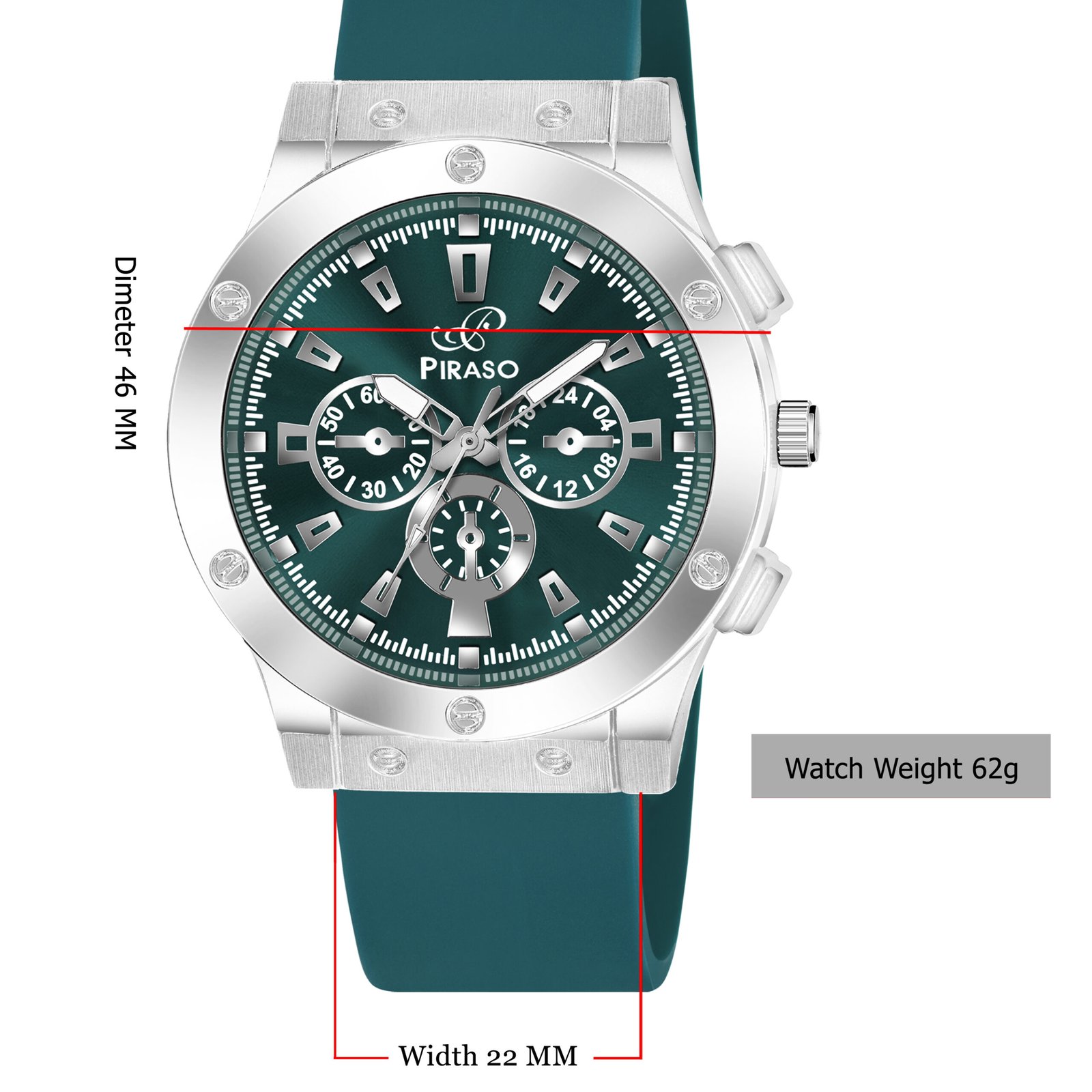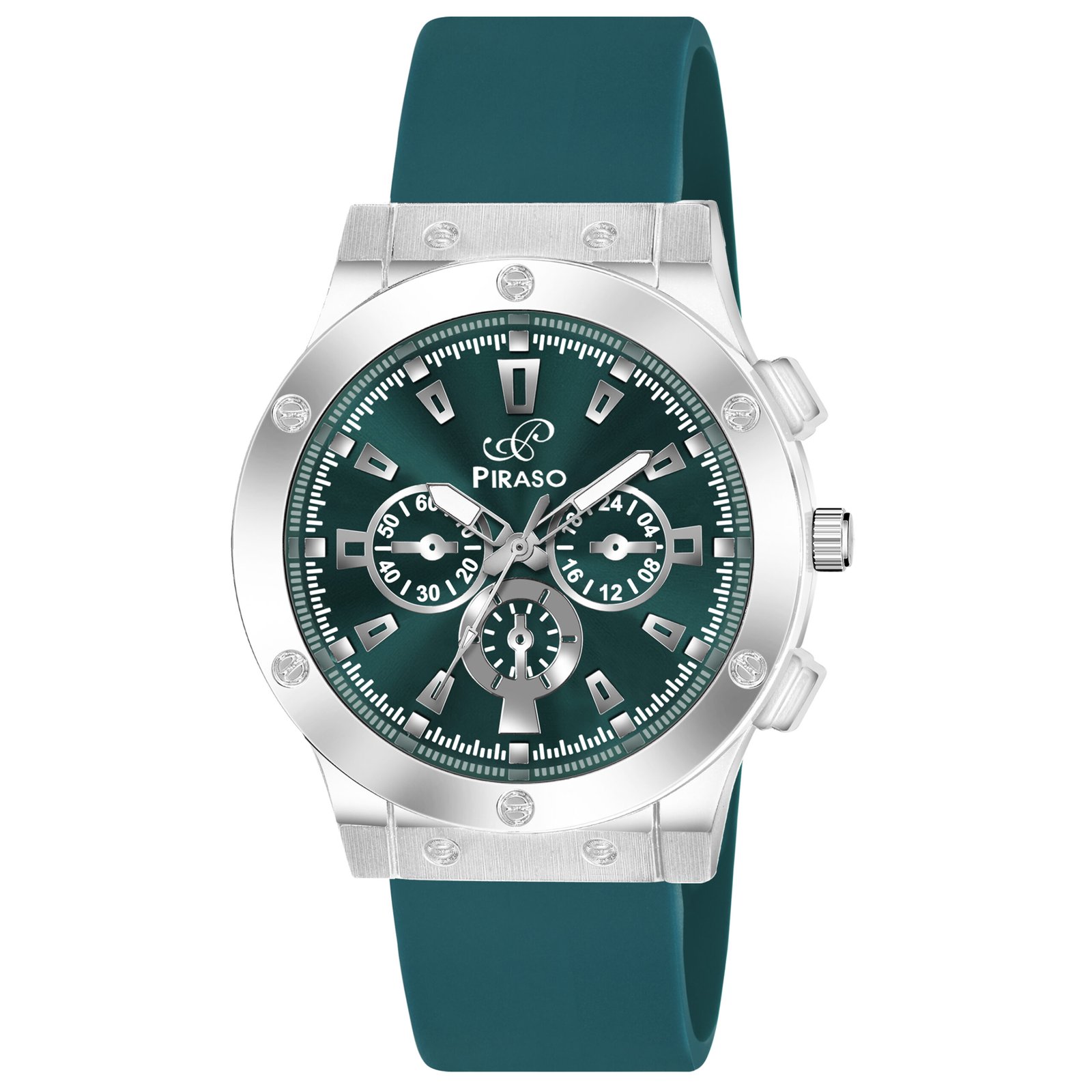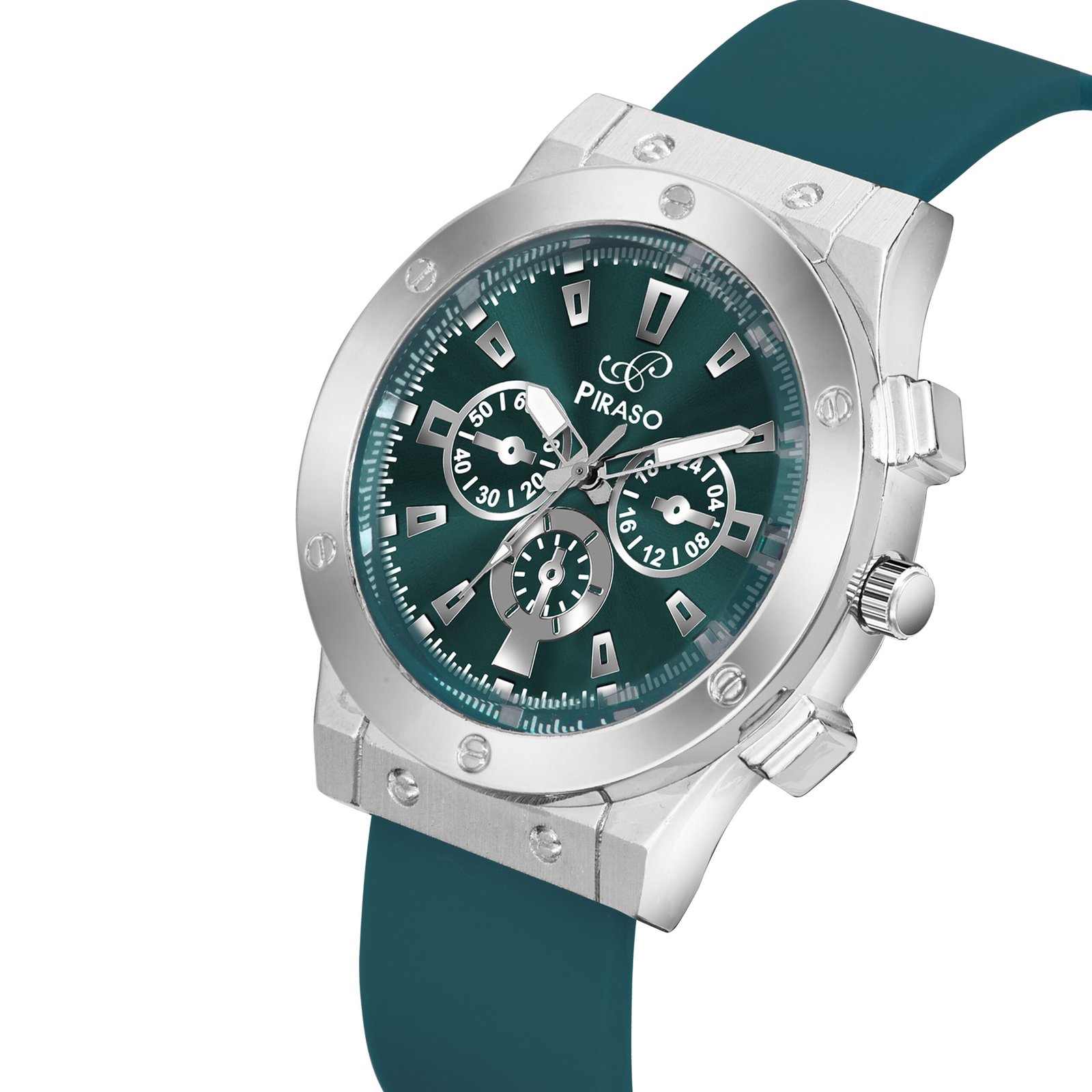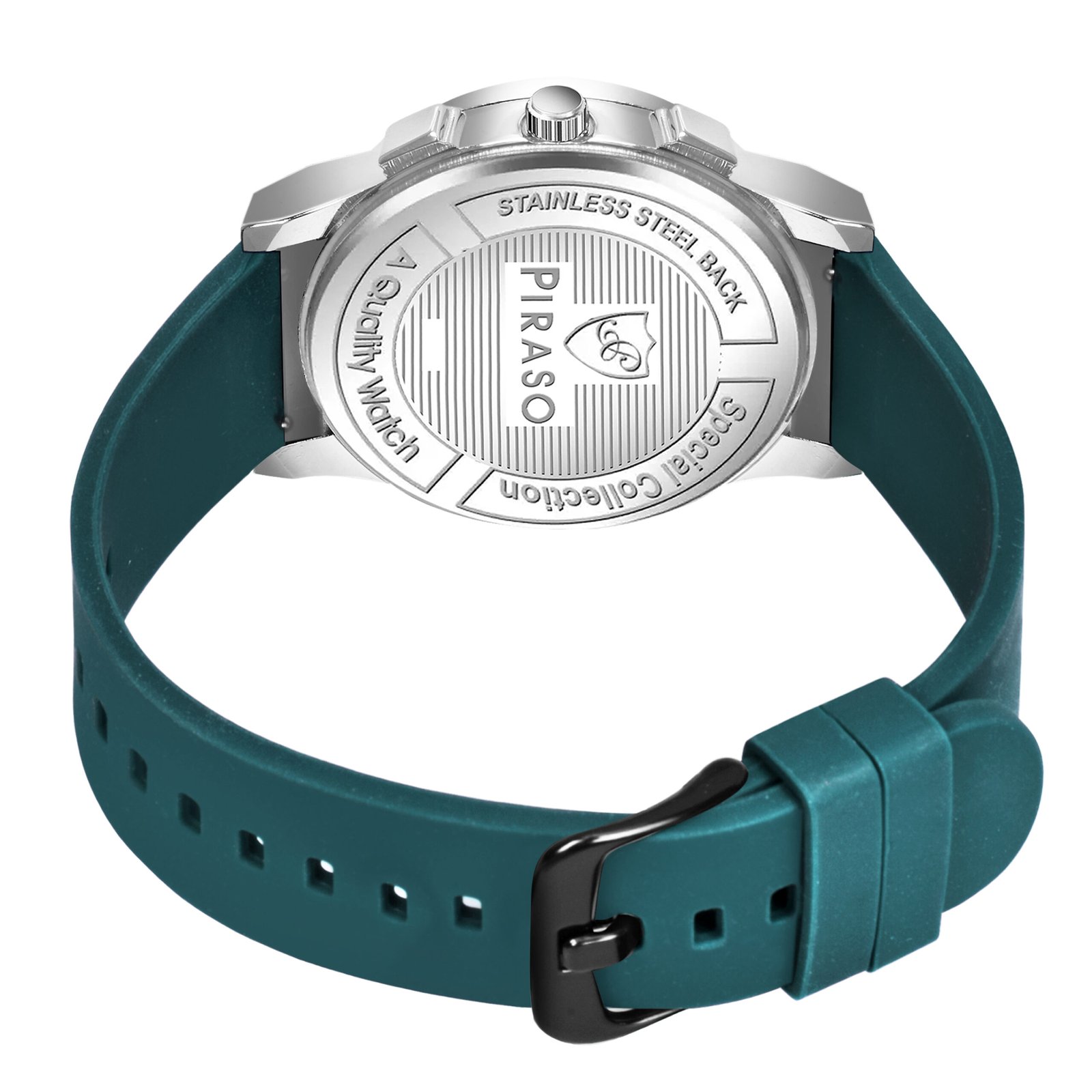 Piraso Turquoise Dial & Turquoise Silicone Strap Analog Watch For Men-HUB 8905 SILVER TURQUOISE SILICONE STRAP