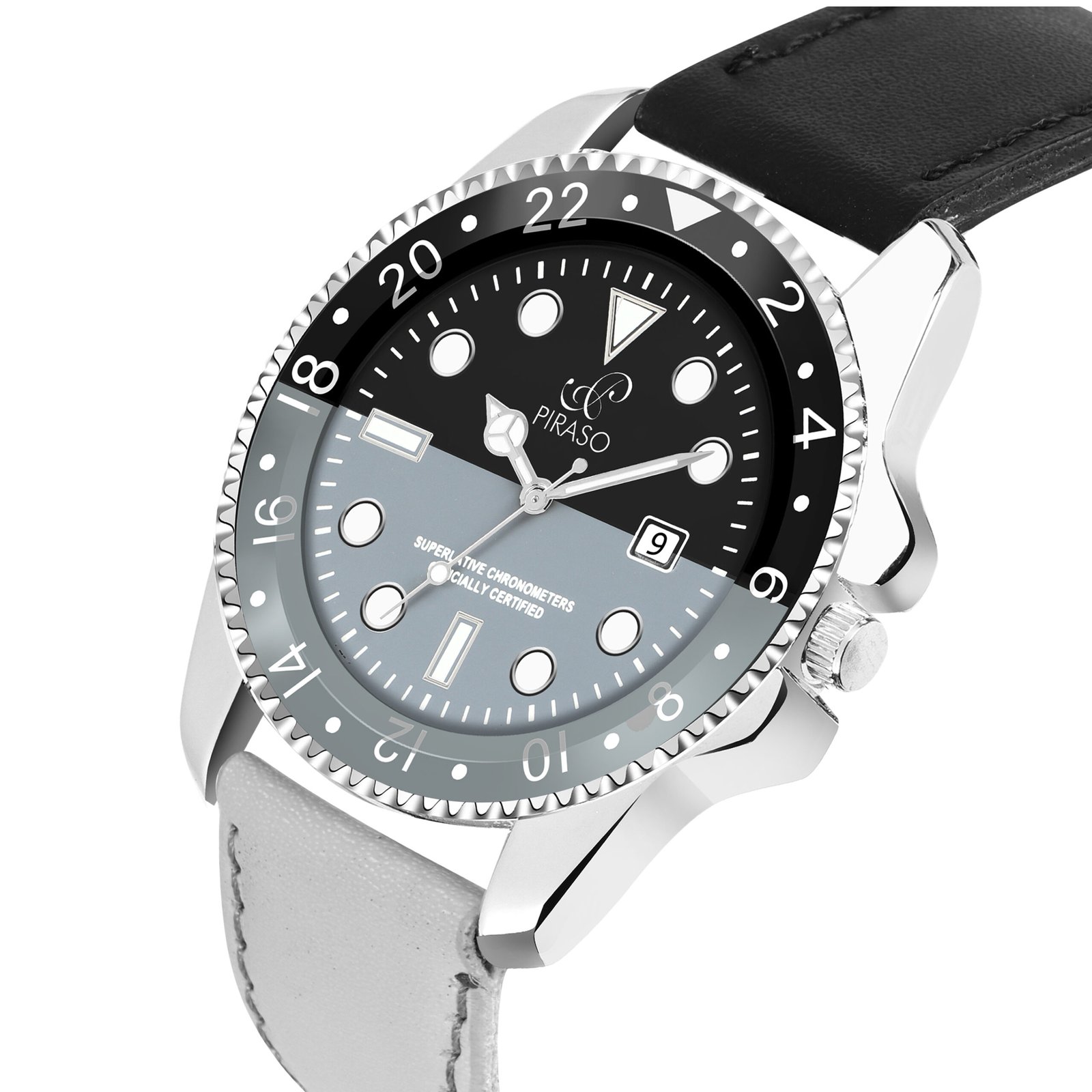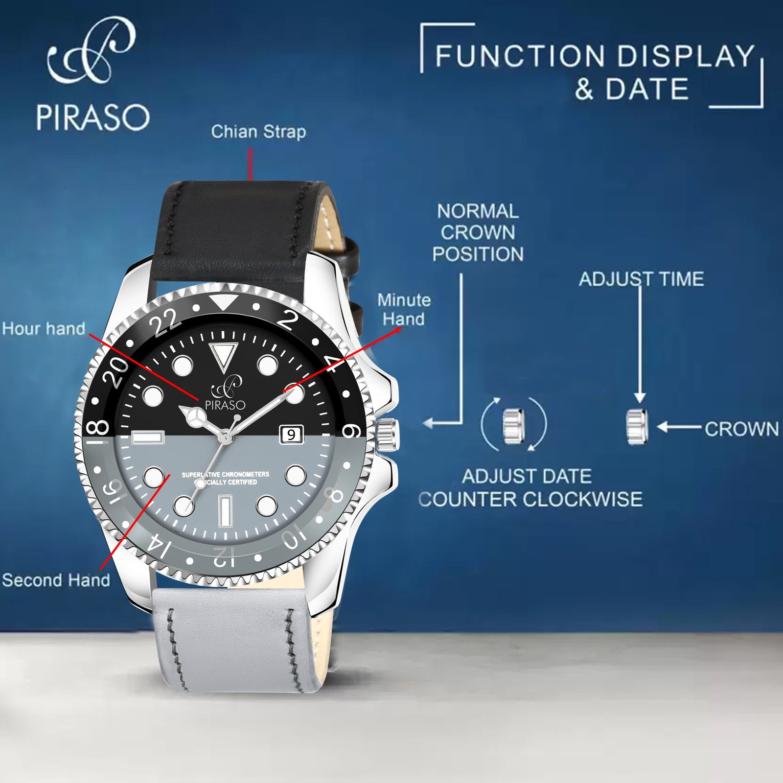 Piraso Two Tone Black & Grey Dial And Black & Grey Strap Watch for Men-ROL-X OG BLACK & GREY STRAP